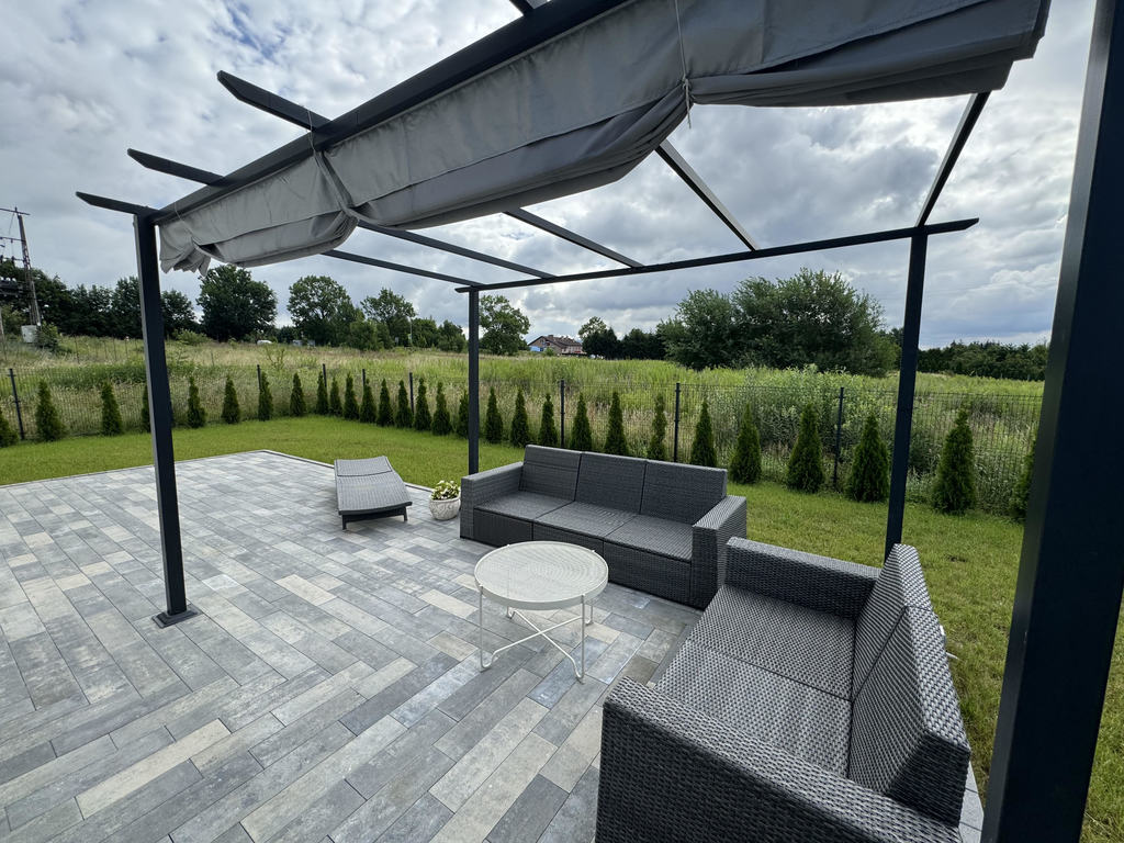 Ogród z tarasem od strony południowej i wschodniej- dwa wyjścia na taras- od kuchni i salonu.