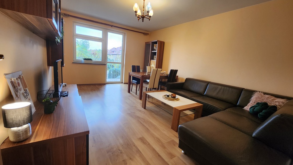 Na sprzedaż jasne rozkładowe mieszkanie 2 pokojowe z balkonem usytuowane na 1-szym piętrze niskiego 2-pietrowego bloku z 2000 roku.