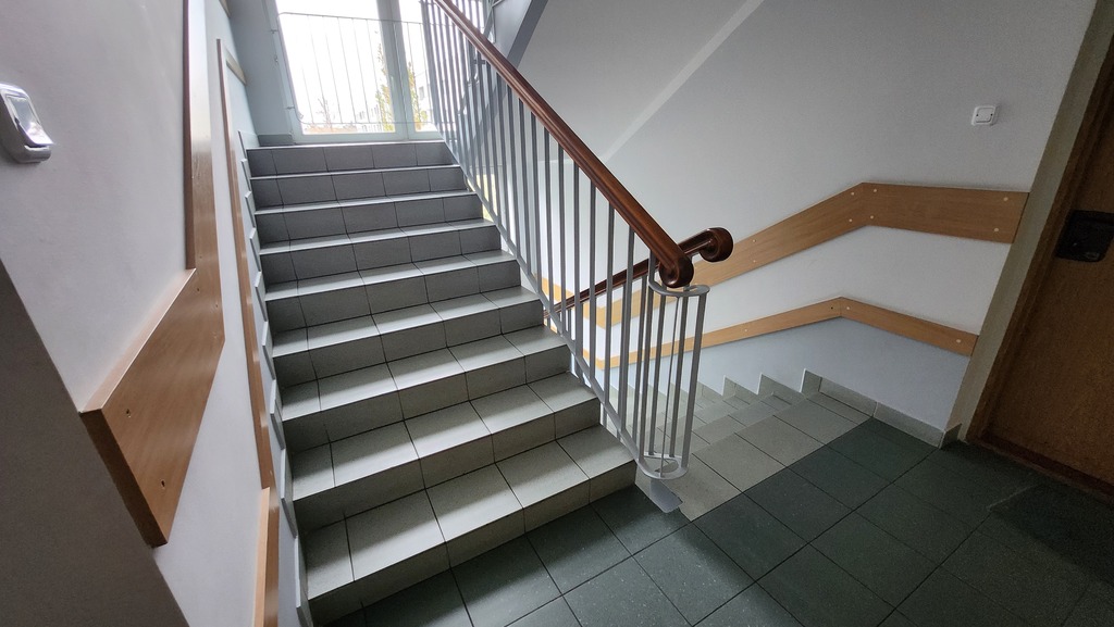 W budynku w przestrzenni pod schodami wydzielone zamykane pomieszczenie do przechowywania rowerów, wózków przez mieszkańców.