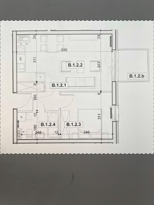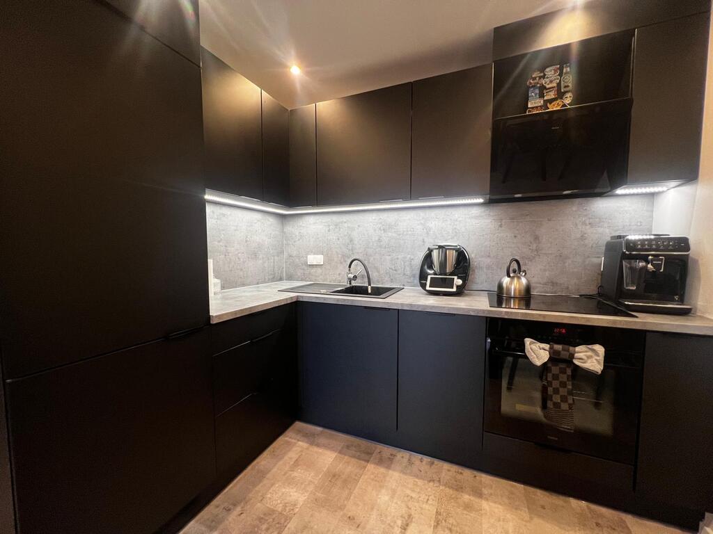 -salonu z aneksem kuchennym z wyjściem na balkon