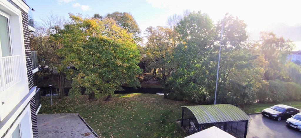 W budynku winda, bardzo eleganckie klatki schodowe i części wspólne. Widok z balkonu - częściowo na zieleń i rzekę, strona południowa.