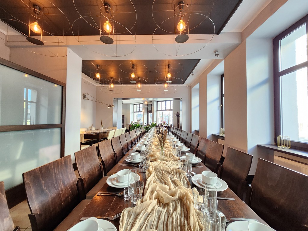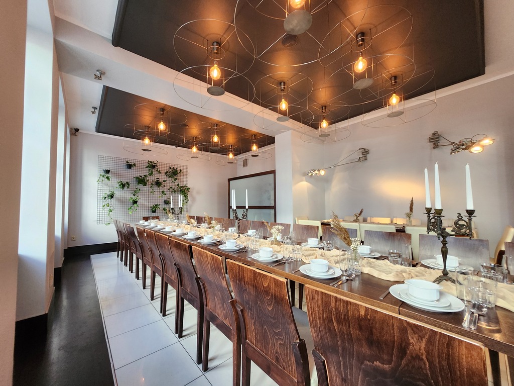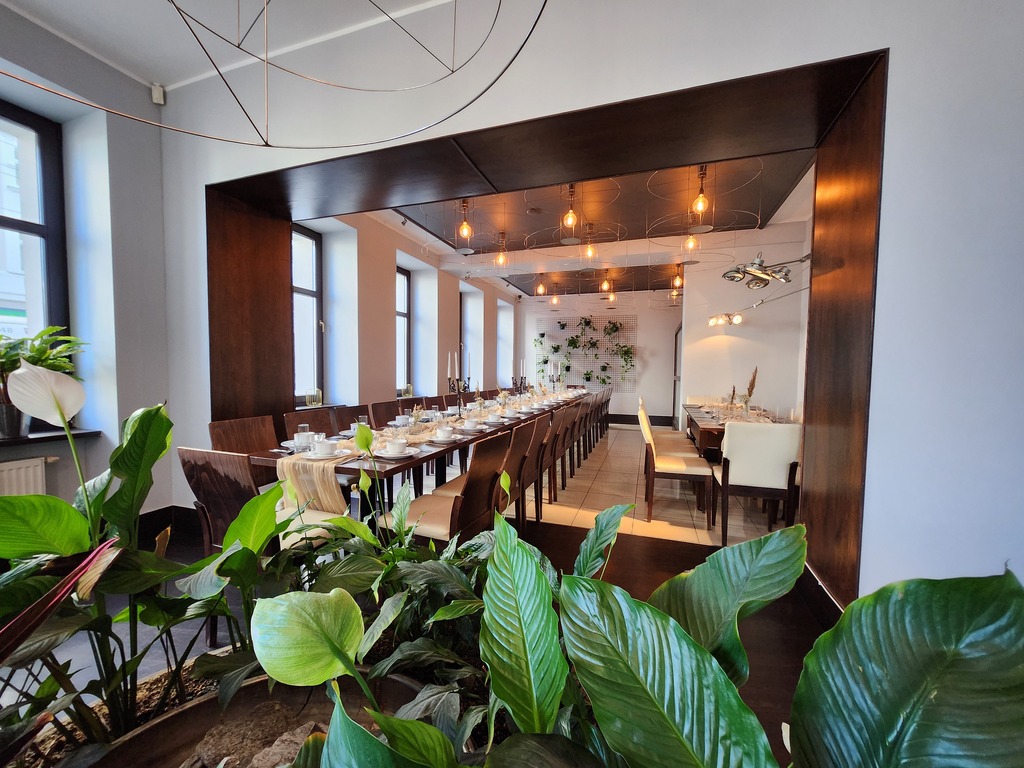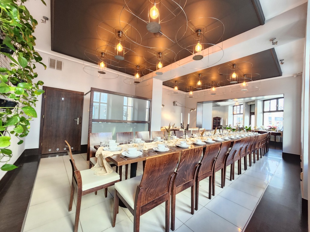 Lokal posiada duże okna na praktycznie całej długości, klimatyczne oświetlenie oraz wystrój.