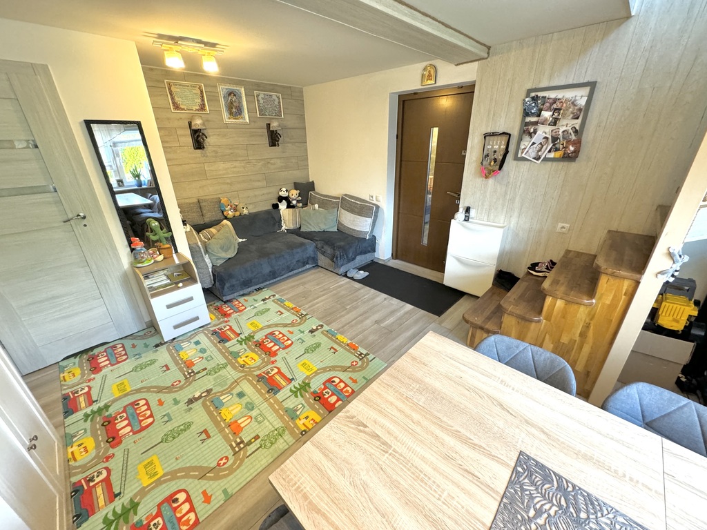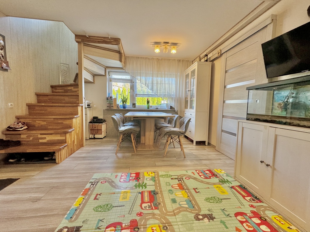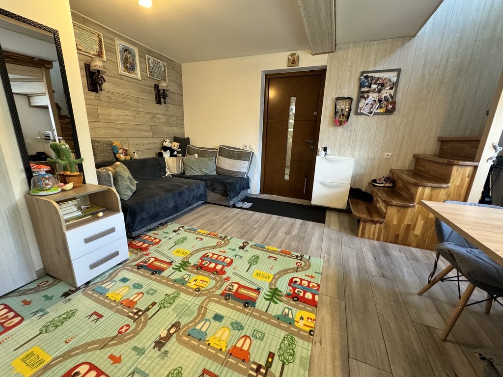Na parterze znajduje się: pokój z kuchnią, salon i łazienka.