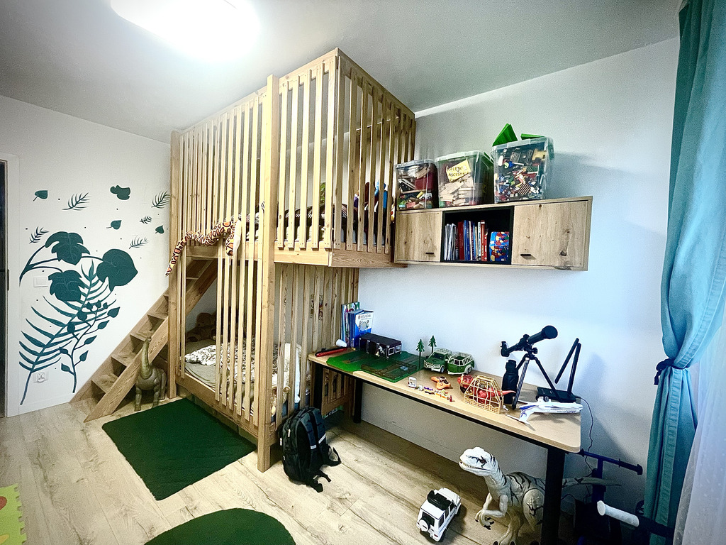 - pokoju dziennego z piętrowym łóżkiem drewnianym