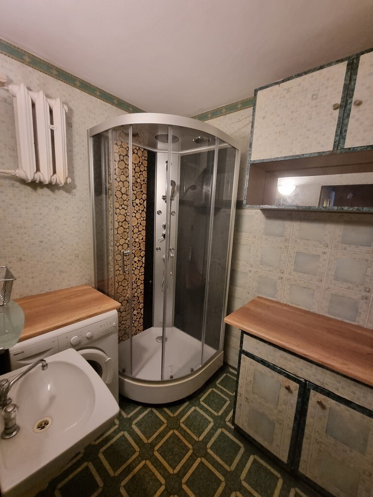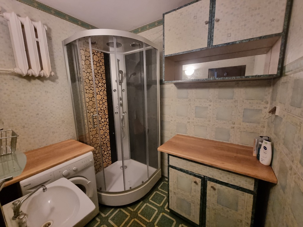 - Łazienka i WC osobno – w łazience znajduje się kabina prysznicowa, umywalka oraz pralka, co zwiększa wygodę codziennego użytkowania.