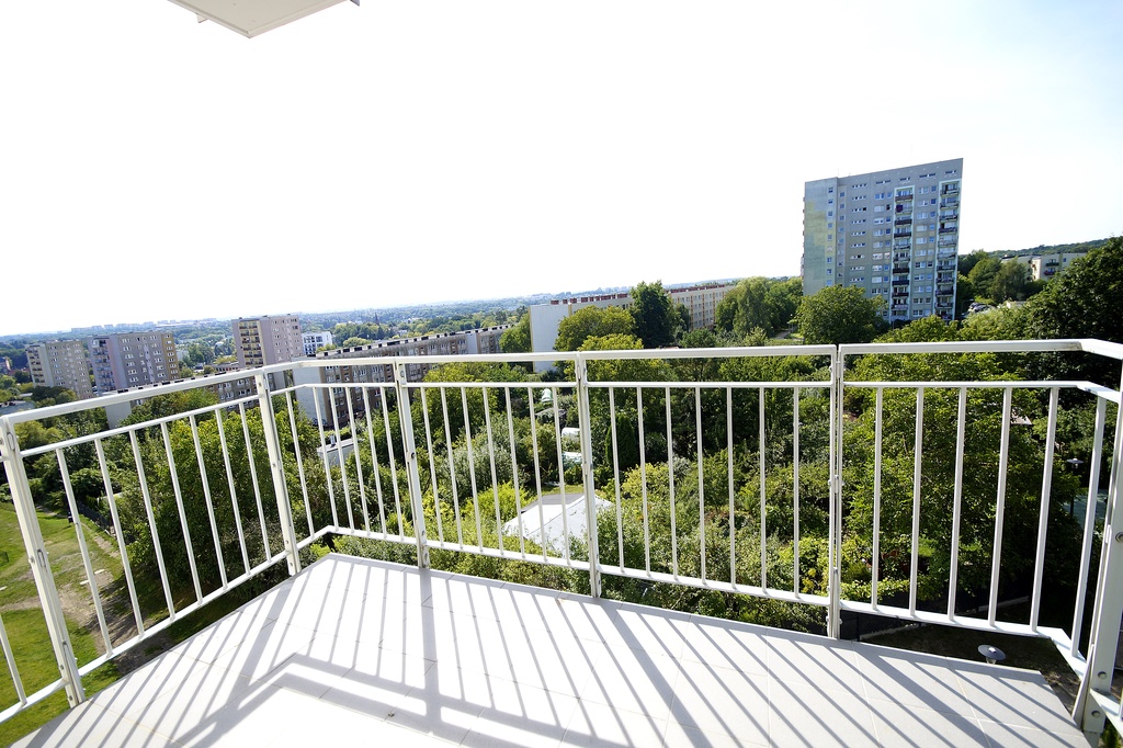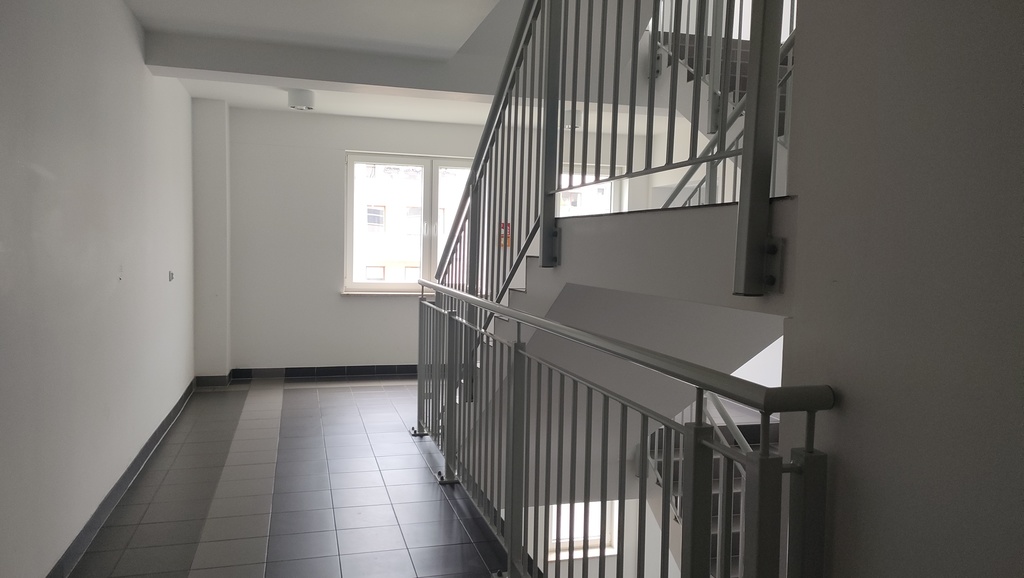 Mieszkanie bardzo ciche. Z balkonu rozległa panorama na miasto. Korytarz na piętrze oddzielony wewnętrznymi ścianami i drzwiami.