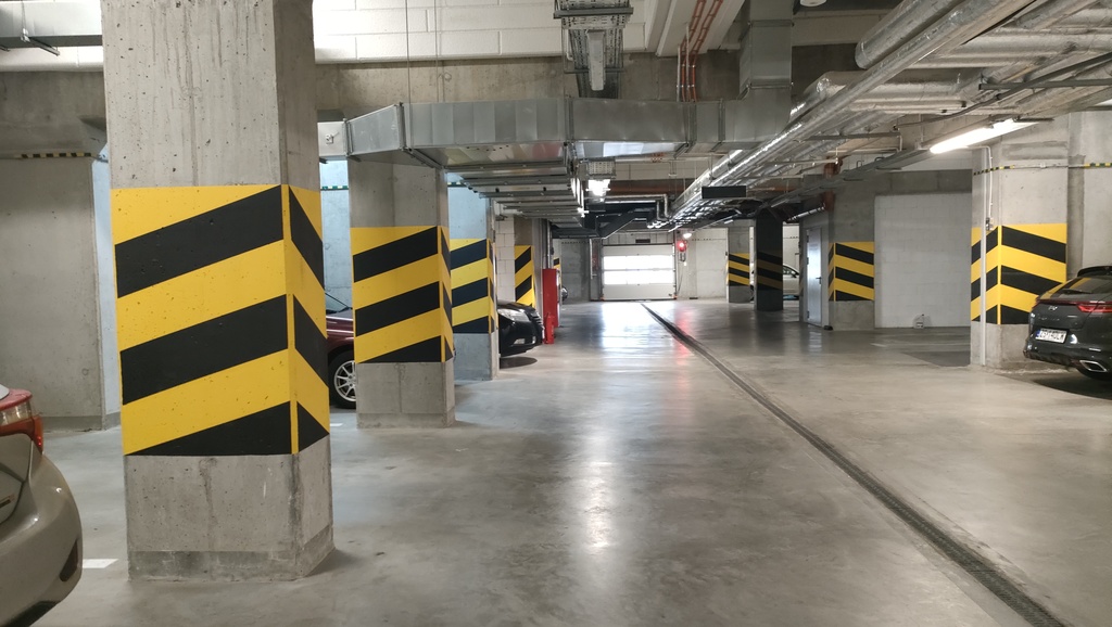 Dodatkowo w cenie mieszkania miejsce parkingowe obok budynku do wyłącznego korzystania i komórka lokatorska o powierzchni 2,82 m2. Pomiędzy budynkami oddalonymi od ulicznego zgiełku obszerny parking.