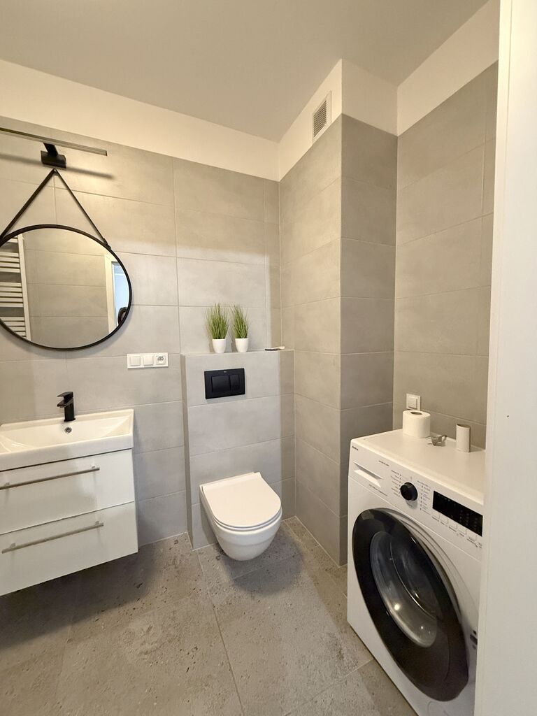 Łazienka i wc w nowoczesnej glazurze i terakocie.