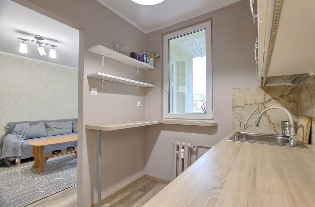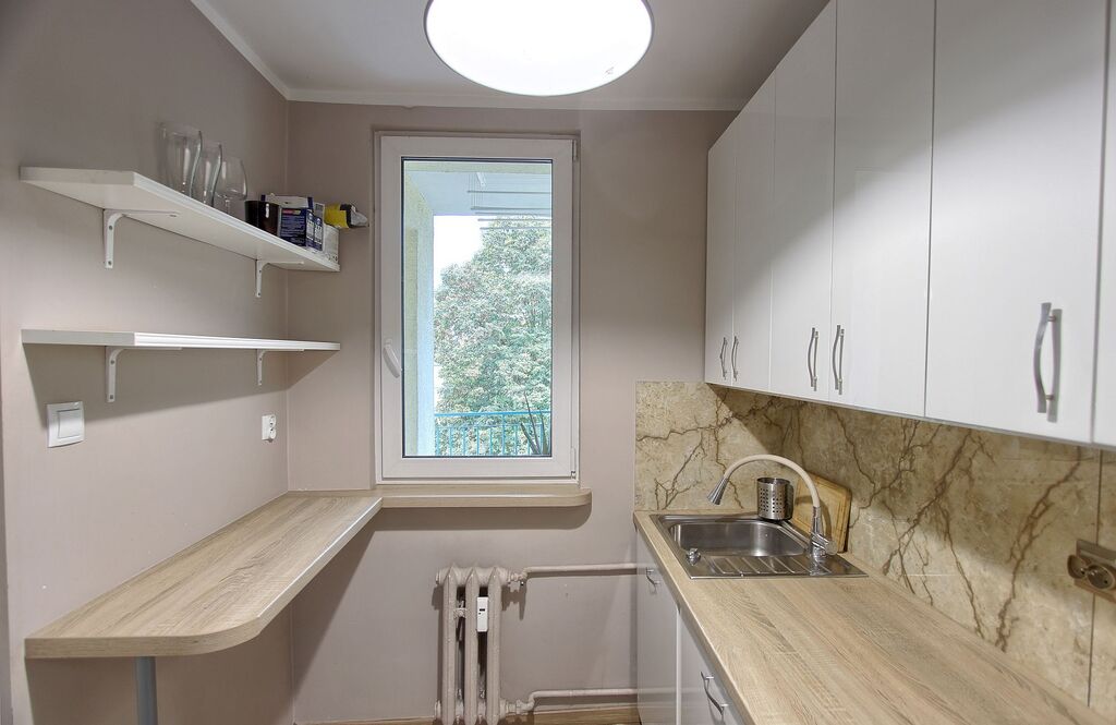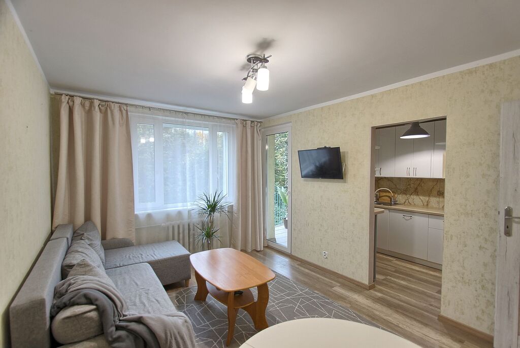 Mieszkanie charakteryzuje się ciepłą i słoneczną atmosferą, a jego dużym atutem jest balkon z pięknym widokiem, który stanowi idealne miejsce do relaksu z filiżanką kawy.