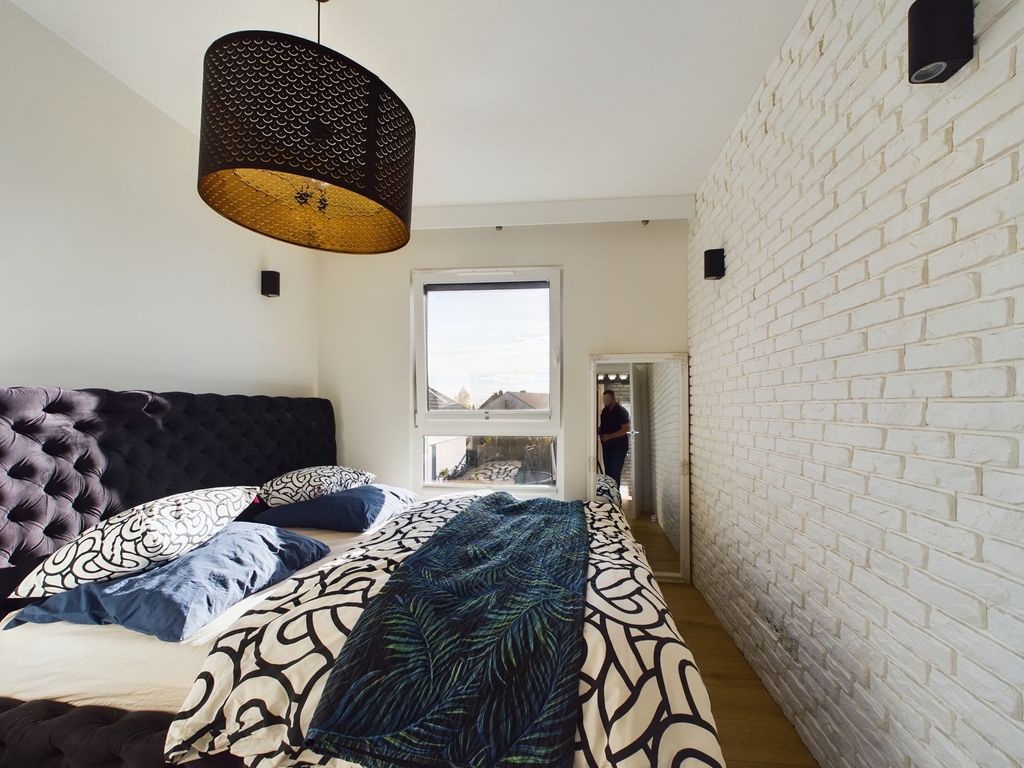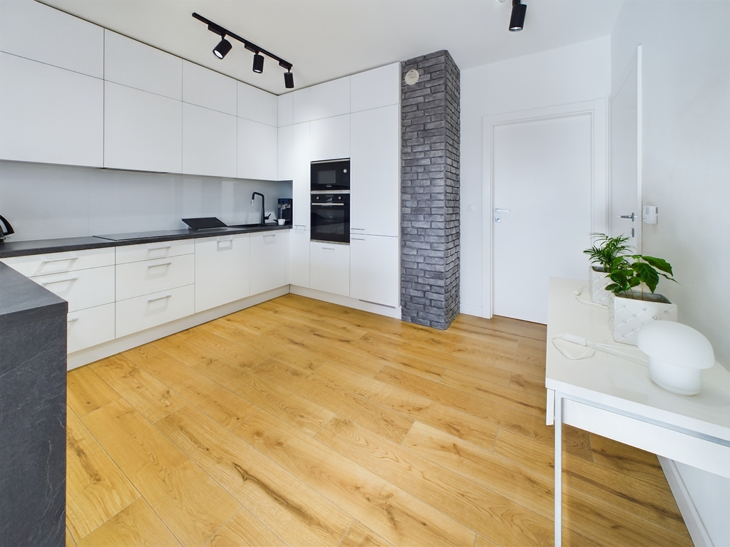 Powierzchnia użytkowa lokalu mieszkalnego 76,88 m2, mieszkanie znajduje się na pierwszym piętrze bez skosów. Dodatkowo duże wysokie poddasze o powierzchni około 25m2, możliwość adaptacji na dodatkowy przestronny pokój.