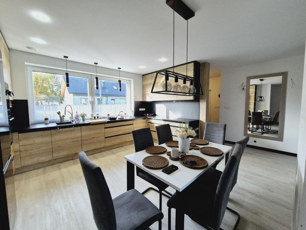 W łazienkach armatura i baterie wysokiej jakości. Sprzęt kuchenny (lodówka, piekarnik, zmywarka, piekarnik, zlew) pozostaje w cenie oraz zabudowa mebli wykonanych na zamówienie . Dom zasługuje na szczególną uwagę ze względu na wysoki standard wykończenia oraz jego charakter. Bardzo atrakcyjna oferta, która spełni oczekiwania nawet bardzo wymagającego klienta. Zapraszam na prezentację.