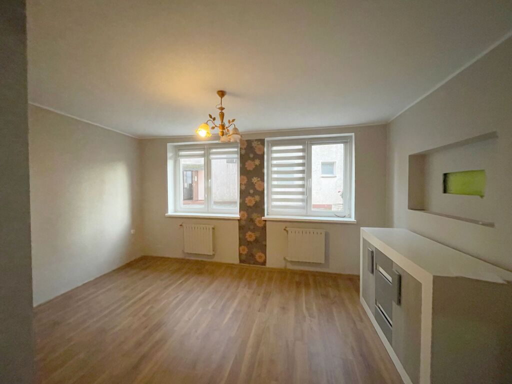 Meble kuchenne wraz ze sprzętem AGD pozostają do dyspozycji przyszłego nabywcy mieszkania. Okna PCV, na podłogach w pokojach panele.