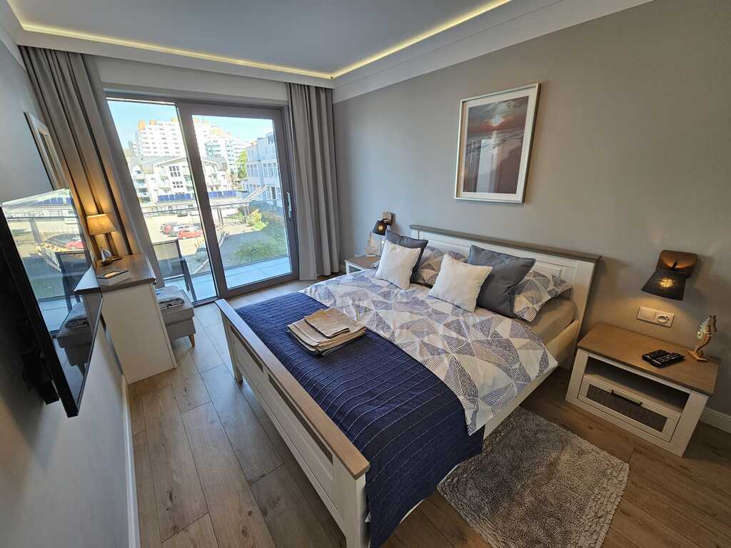 Oferujemy Państwu 2-pokojowy, luksusowy, gustownie urządzony apartament w Międzyzdrojach z widokiem bocznym na morze, zaledwie 100m od plaży. Apartament oddany do użytku w 2020r., został w pełni umeblowany i całkowicie wyposażony. Apartamentowiec, w którym się znajduje, to nowoczesny budynek bez barier, wyposażony w dwie windy przystosowane dla osób niepełnosprawnych, portiernię, halę garażową oraz lokale handlowo-usługowe w parterze.