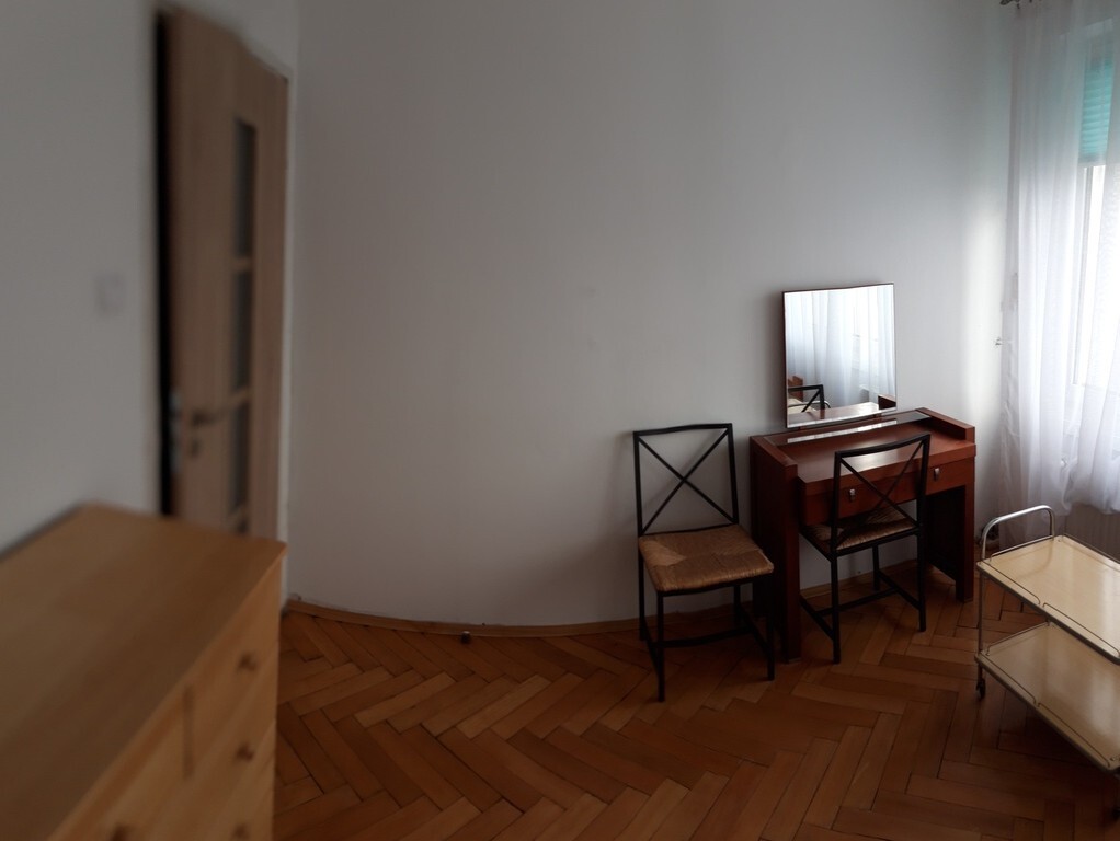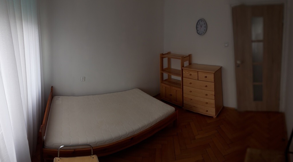 Sypialnia wyposażona w dwuosobowe łózko , komodę ,szafkę i toaletkę. Na podłodze parkiet drewniany. Okna sypialni skierowane są na spokojną stronę podwórka.