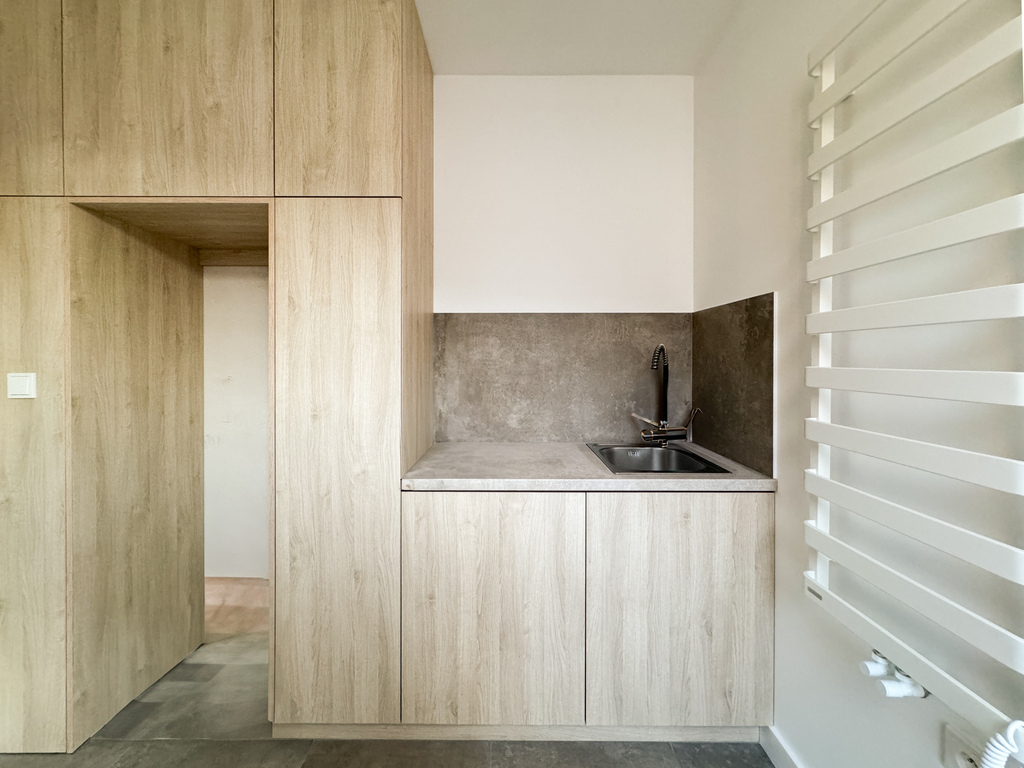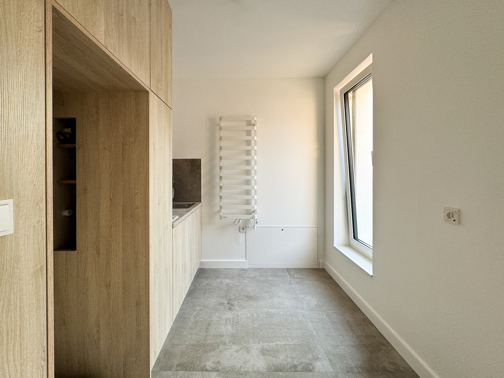 Na piętrze znajduje się również pralnia - wykonana zabudowa, zlew techniczny oraz dodatkowy grzejnik.