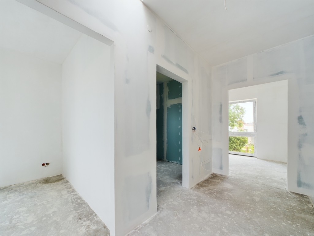 Wnętrze doprowadzone do stanu deweloperskiego podwyższonego (oprócz tynków ściany zostały wygładzone i pomalowane białą farbą podkładową) dzięki czemu wykończenie mieszkania będzie dużo tańsze.