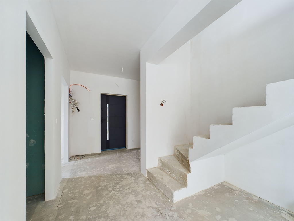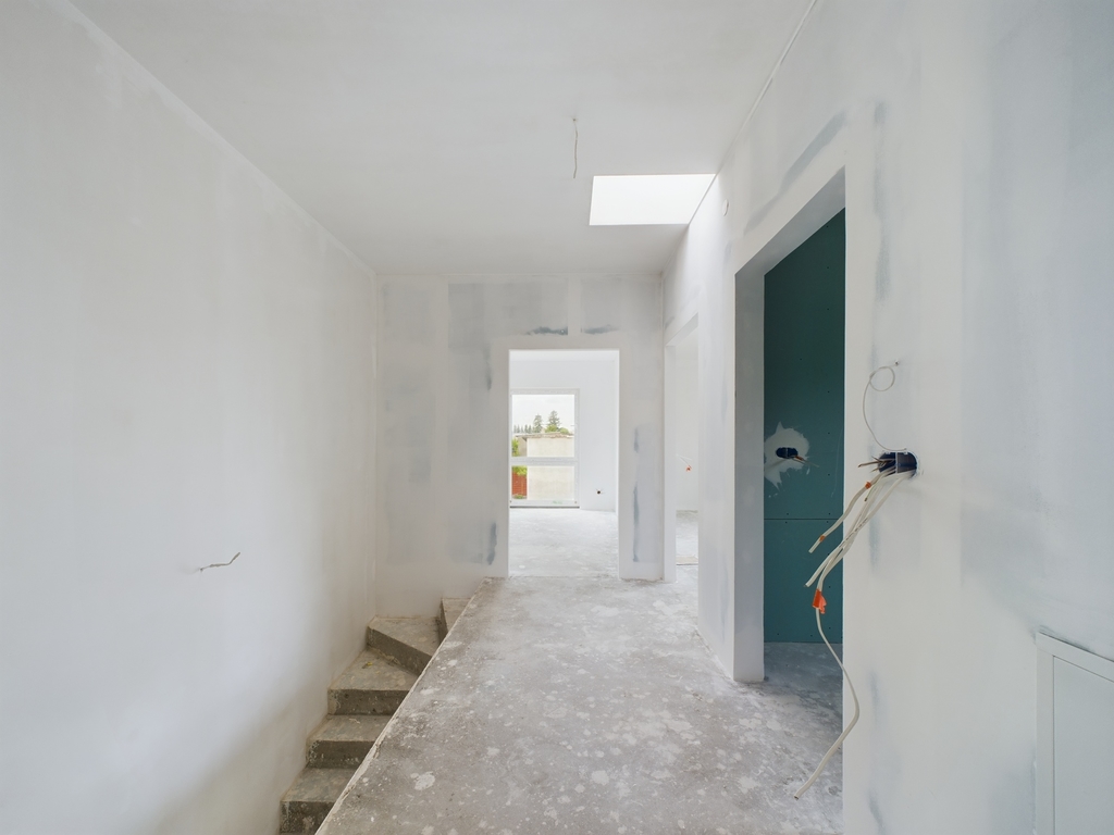 Na powierzchni całego mieszkania rozprowadzono ogrzewanie podłogowe, które docelowo ma być zasilanie pompą ciepła, instalację elektryczną (również pod infrastrukturę zewnętrzną).