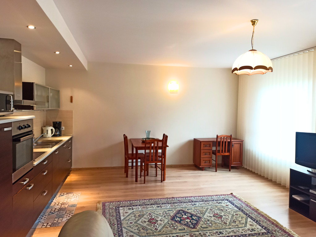 Mieszkanie wykończone jest w wysokim standardzie, bardzo mało użytkowane. Kuchnia wyposażona jest w zabudowę oraz wysokiej klasy sprzęt AGD, który pozostaje w cenie. Okna PCV z antywłamaniowymi roletami zewnętrznymi zapewniają dodatkowe poczucie bezpieczeństwa.