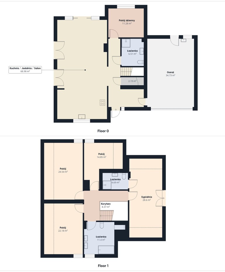 - duży garaż o powierzchni ok 35 m2 -na dwa auta z bezpośrednim wejściem do domu.