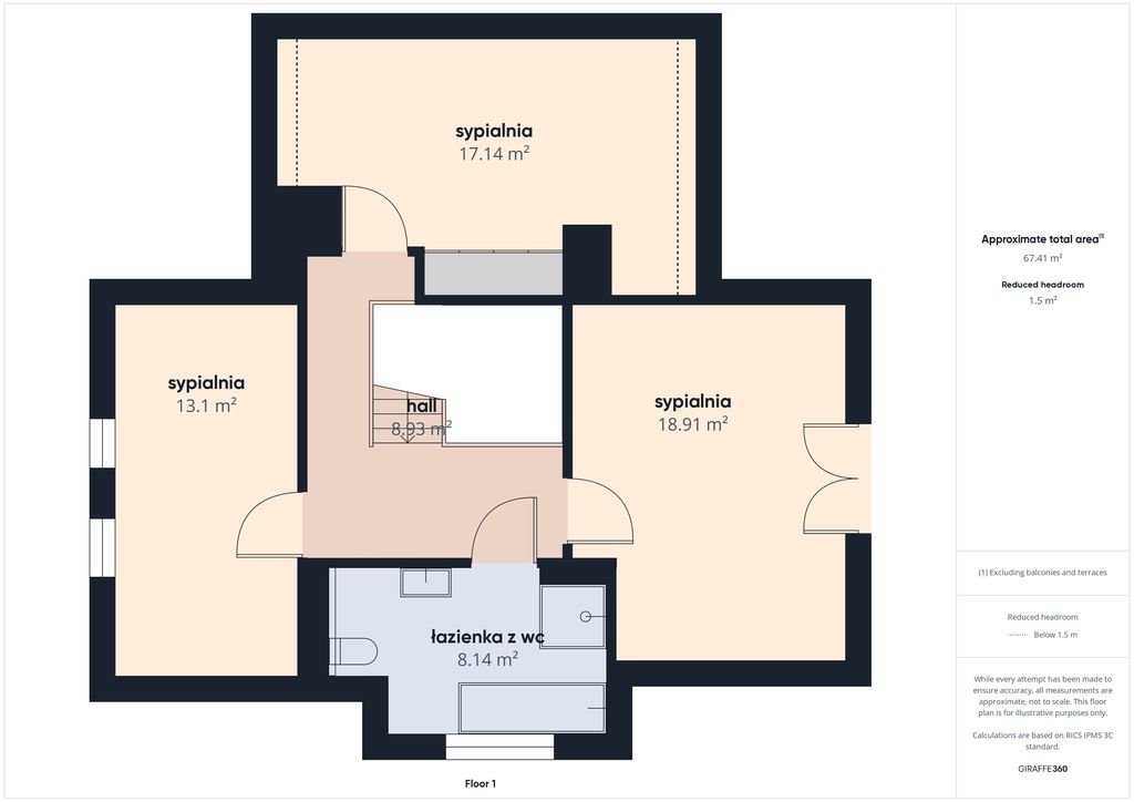 - 3 jasne, duże sypialnie ( jedna z wyjściem na balkon)