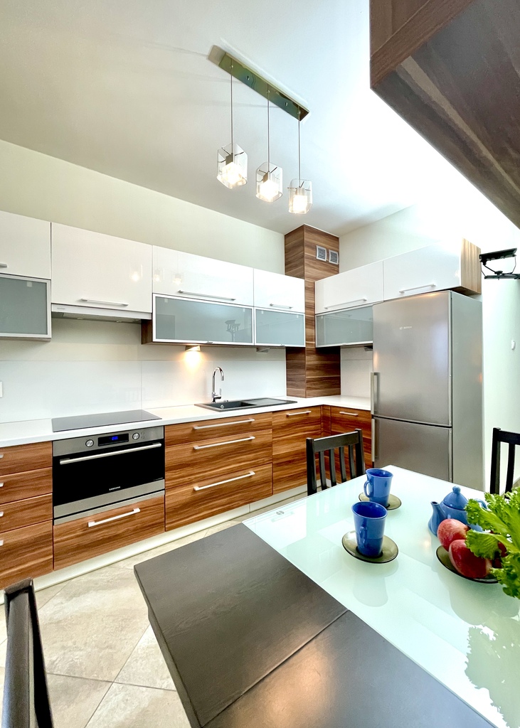 - *Oddzielną kuchnią*, zapewniającą komfort gotowania,