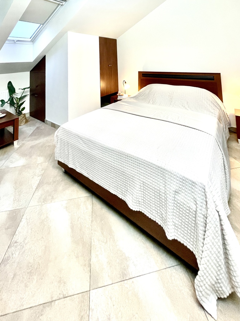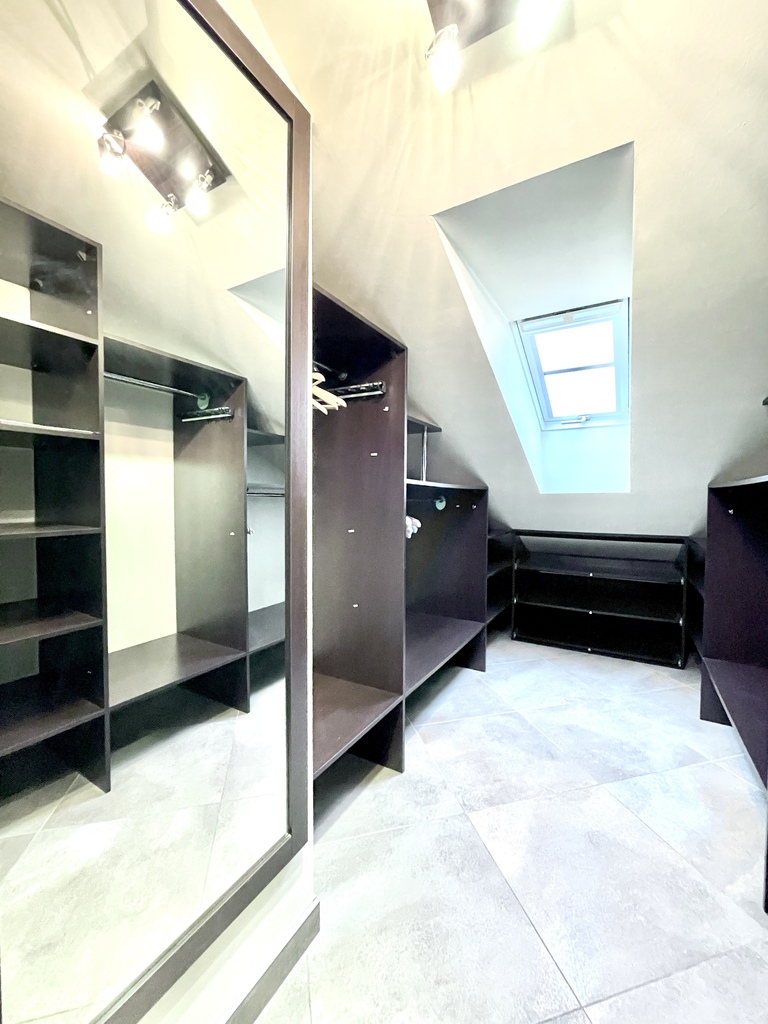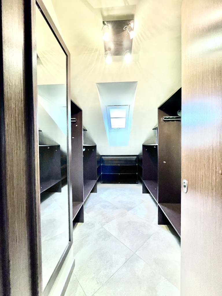 - *Dużą garderobą z oknem*, która może być przerobiona na gabinet lub dodatkowy pokój,