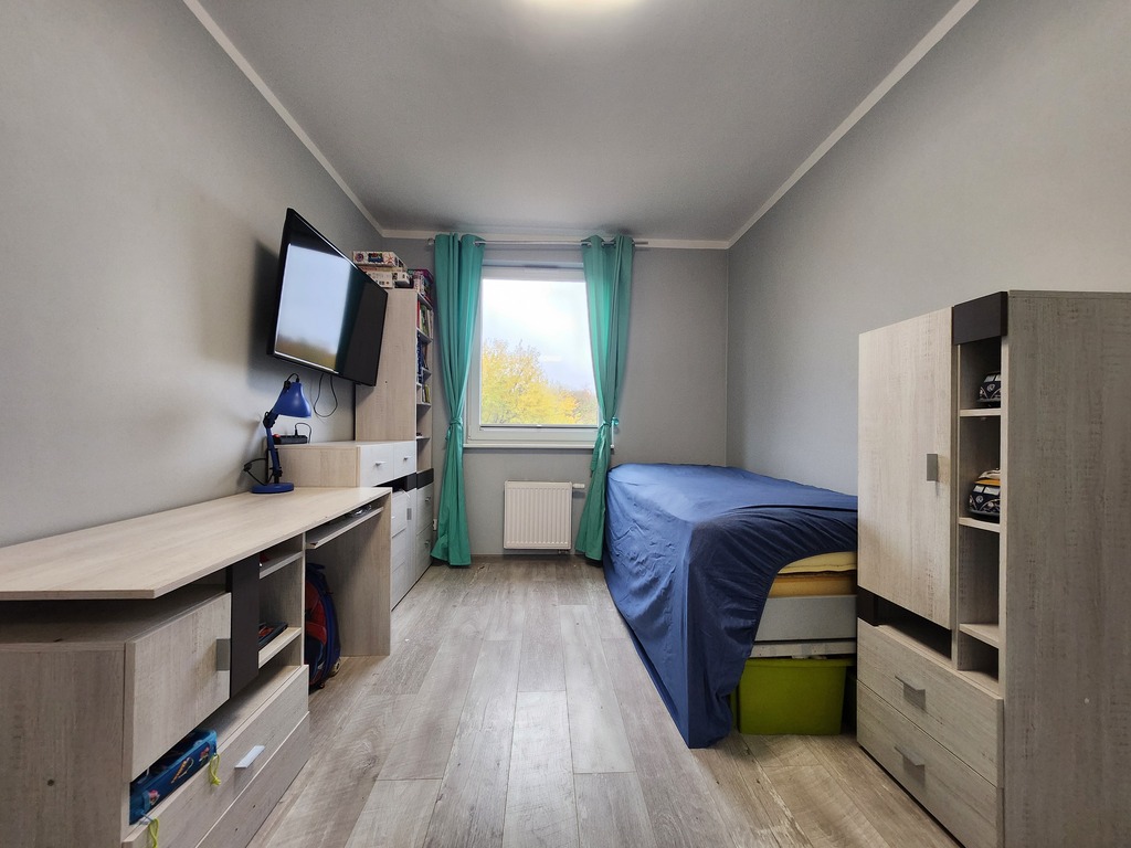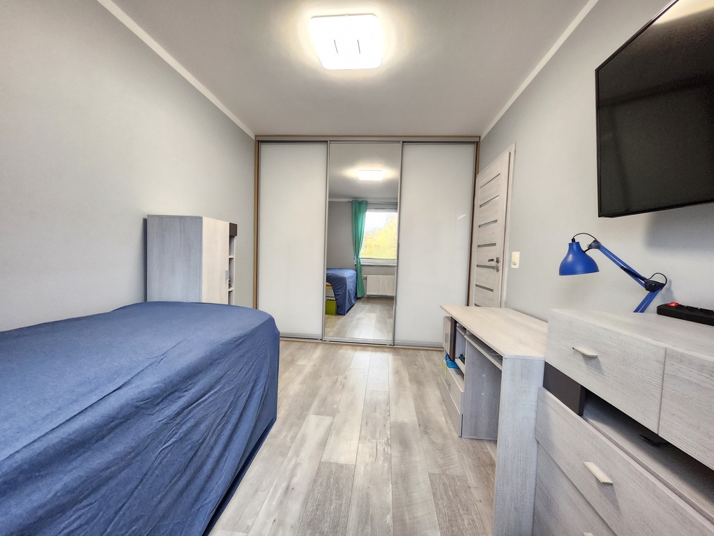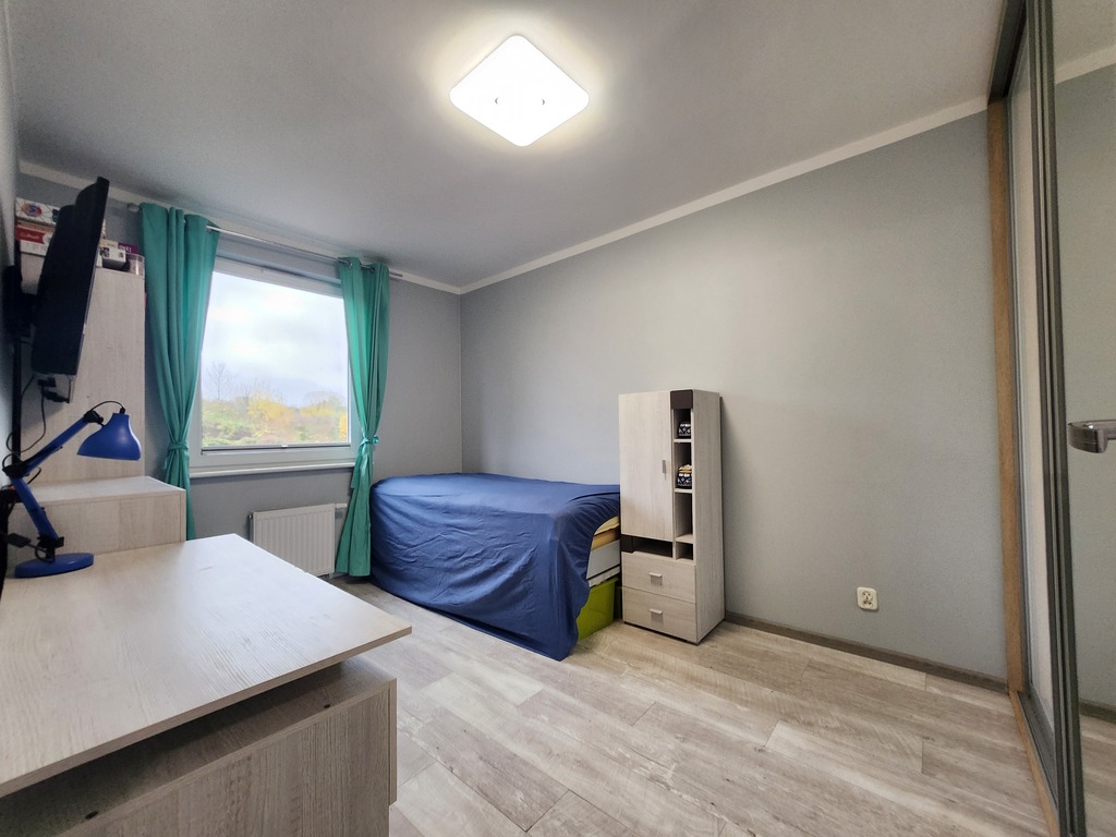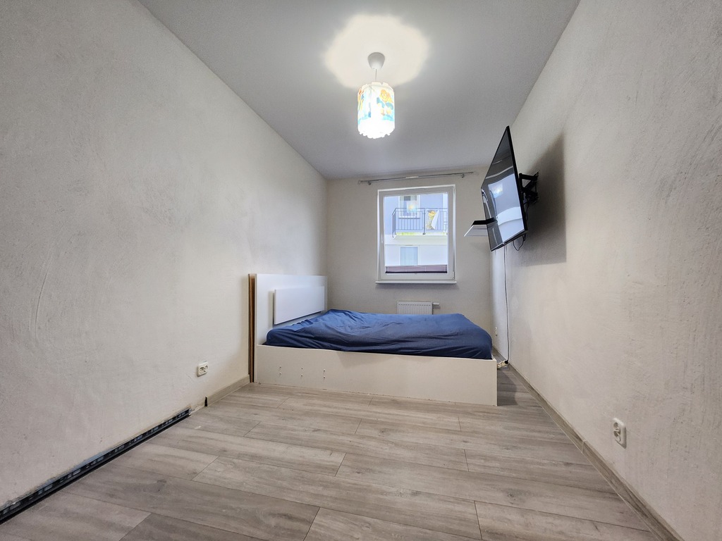 Nieruchomość w stanie do odświeżenia. Ściany gładzone i malowane, na podłodze panele.