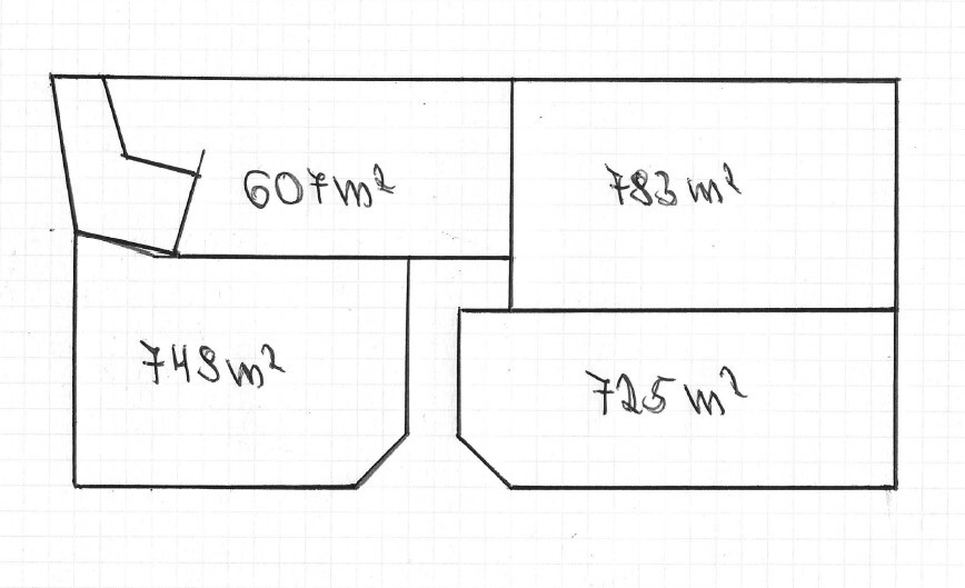 Działka położona w kompleksie czterech działek o zróżnicowanej powierzchni: