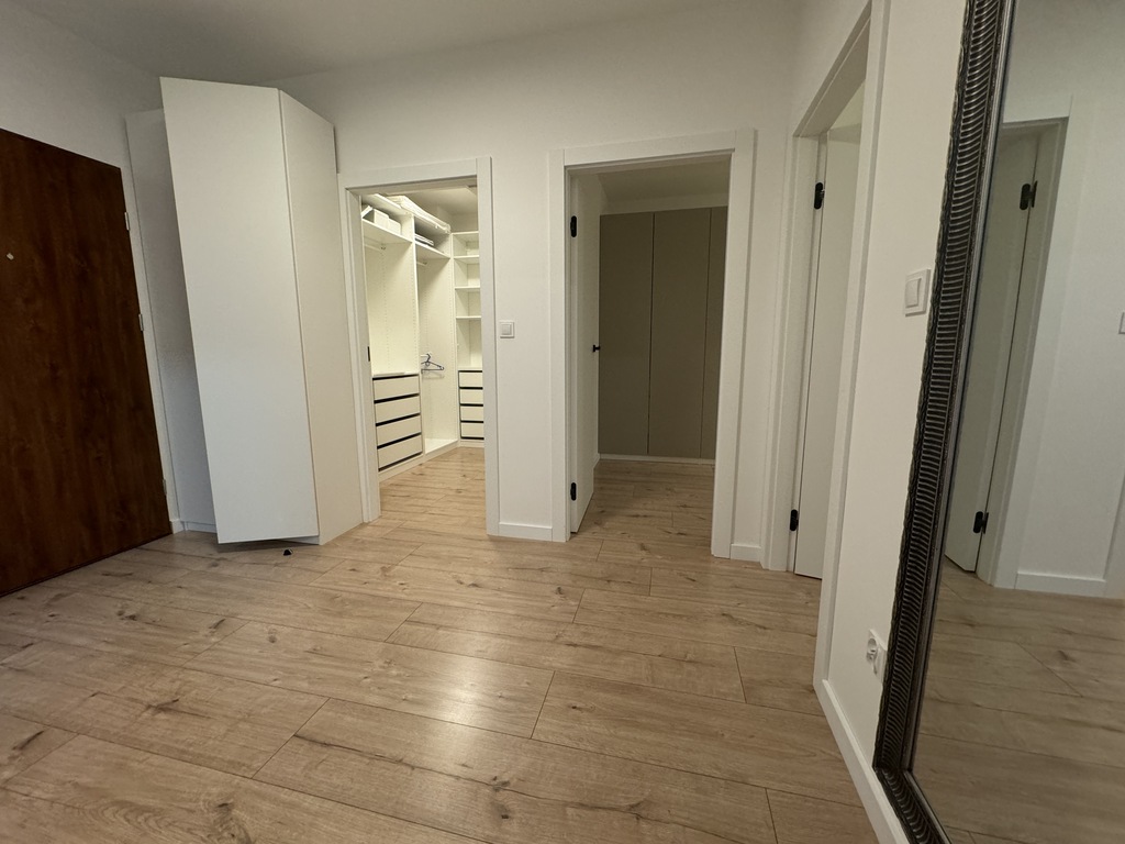 Wyposażenie: pralka, zmywarka, piekarnik, płyta indukcyjna, lodówka z zamrażalnikiem, łóżka, szafy, umeblowana garderoba.