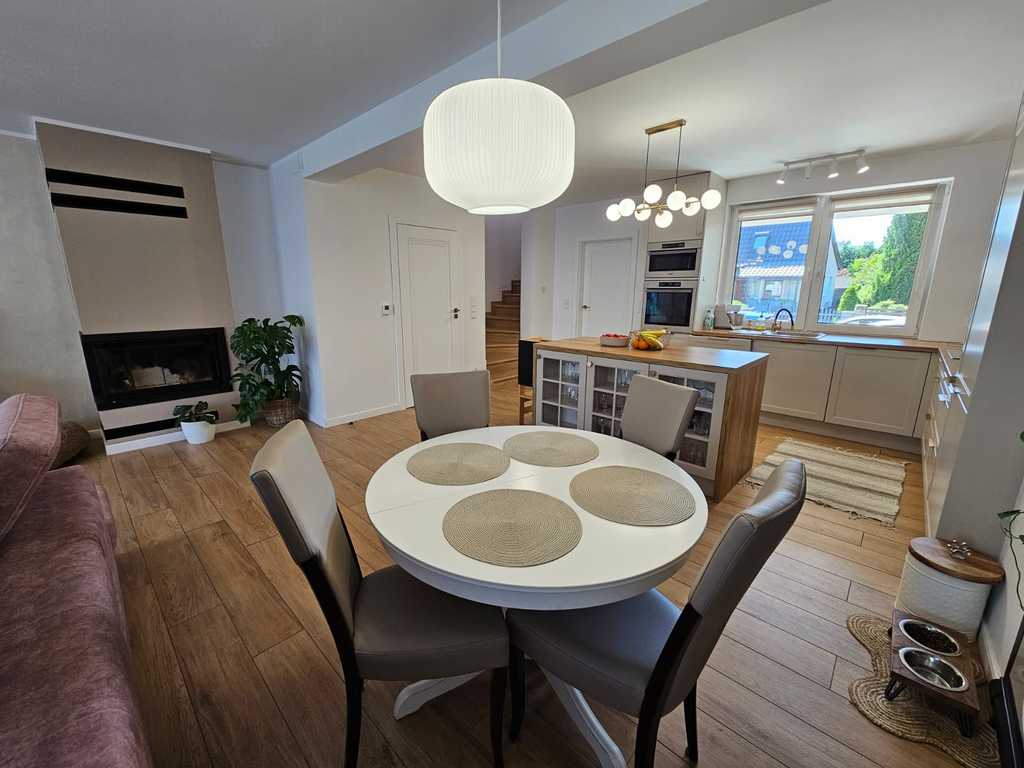 Duży przestronny dom w zabudowie bliźniaczej o powierzchni całkowitej 215m2, powierzchni użytkowej 175m2 z 5 pokojami, zlokalizowany na jednym z najbardziej prestiżowych osiedli Szczecina - Pogodnie.