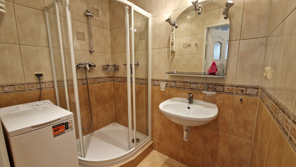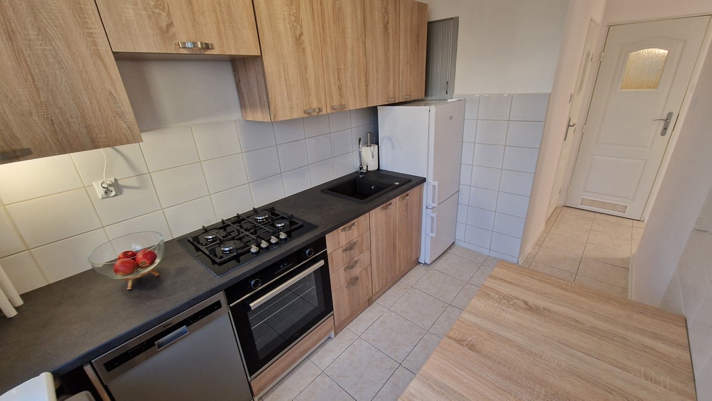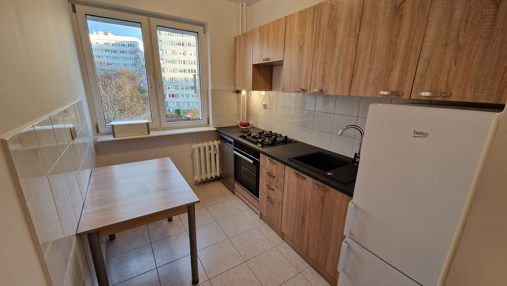 Kuchnia z oknem również od strony wschodniej o pow. 6,3m2 umeblowana w nowe meble i całkowicie nowy sprzęt AGD (zmywarka, płyta gazowa, piekarnik) i lodówkę. Łazienka o pow. ok 3m2 z kabiną prysznicową oraz nową pralką. Osobno WC o pow. 1m2.