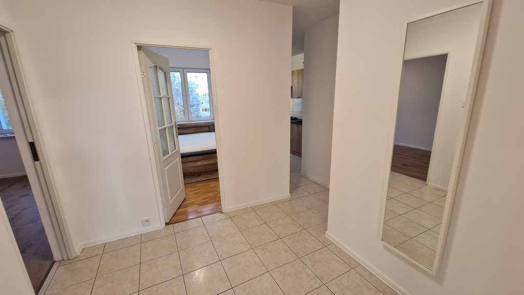 Wszystkie pomieszczenia dostępne z korytarza który jest dwuczęściowy, pierwsza jego część przy wejściu w formie wiatrołapu z zabudowanymi szafami oraz druga cześć również miejscem na dodatkową szafę. Wszystkie okna w mieszkaniu wymienione na PCV. Mieszkanie jest jasne i słoneczne w całości świeżo odmalowane i gotowe do zamieszkania.