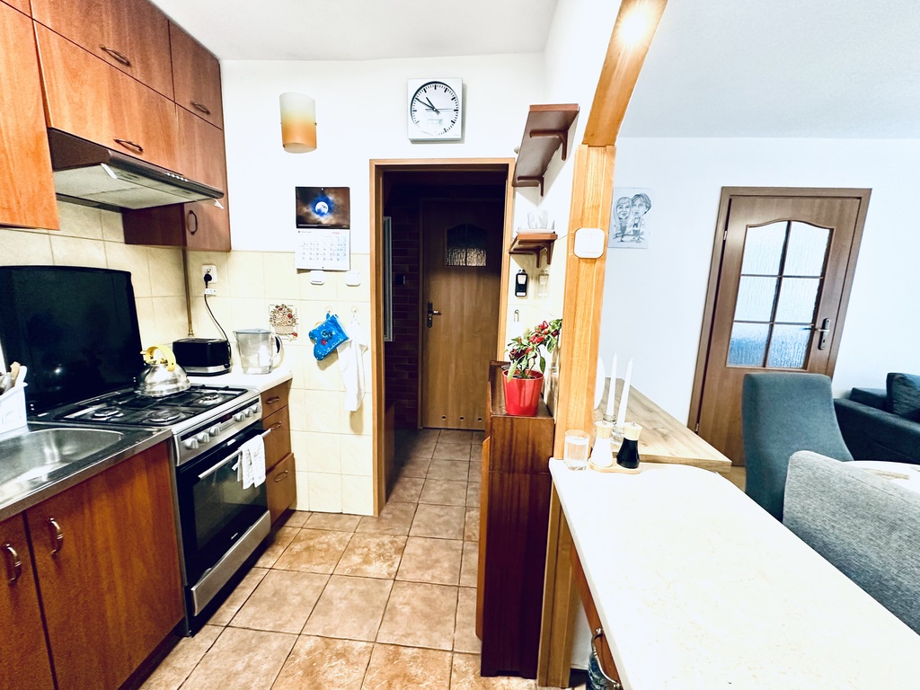 Na powierzchnię ponad 35m2 składają się: salon z wyjściem na maleńki balkonik (większy balkon francuski 130x40), sypialnia z wejściem z salonu, osobna kuchnia z oknem na pokój, łazienka z toaletą i przedpokój. Dodatkowo piwnica o powierzchni około 3m2.