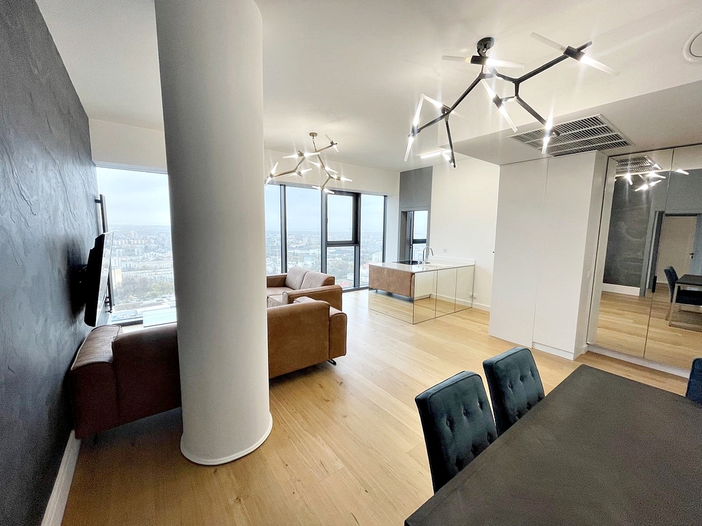 Na wynajem piękny luksusowy apartament o powierzchni 82m2 zlokalizowany w prestiżowym apartamentowcu e centrum miasta. Składa się z 2 sypialni, salonu z aneksem kuchennym, dwóch łazienek i garderoby. Jest dla osób lubiących luksus, prestiż, w najwyższym standardzie. Mieszkanie jest klimatyzowane, w pełni umeblowane, wykończone z wykorzystaniem materiałów najwyższej jakości. Wyposażone, w piękną zabudowę kuchenną wraz ze sprzętem AGD, sypialnie będą z łóżkami z szafkami nocnymi, w jednej sypialni jest pojemna szafą, duża garderoba. Pięknie zrobione łazienki, jedna z wanną, a druga łazienka z kabiną. Duża szafa na przedpokoju. Salon z kuchnią i jadalnią stanowią dużą i funkcjonalną przestrzeń , zaprojektowaną z myślą o wypoczynku komforcie. Salon wyposażony jest w piękne wypoczynkowe sofy , stolik kawowy, duży telewizor, a jego przestrzeń łączy się z kuchnią i jadalnią, w której znajduje się piękny stół z krzesłami. Ogromne okna w całym apartamencie zapewniają niesamowite widoki na panoramę miasta oraz mnóstwo naturalnego światła. W cenie wynajmu jest dostęp do basenu i spa (sauna sucha i parowa), znajdującej się w dolnej części kondygnacji budynku- idealne miejsce na relaks i regenerację. Znajduje się tam również doskonale wyposażona siłownia. Recepcja jest całodobowa , co zapewnia wygodę i bezpieczeństwo na najwyższym poziomie. W budynku znajduje się również renomowana restauracja . Czynsz do wspólnoty wraz z miejscem postojowym w podziemnym garażowcu wynosi 2500 zł, kaucja w wysokości 17.000 tys, koszt wynajmu 8500 zł. Ten nowoczesny, luksusowy apartament jest propozycją dla osób najbardziej wymagających, które doceniają luksus, funkcjonalność w znakomitej lokalizacji. Serdecznie zapraszam na prezentację.
