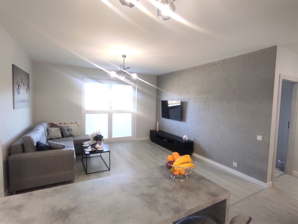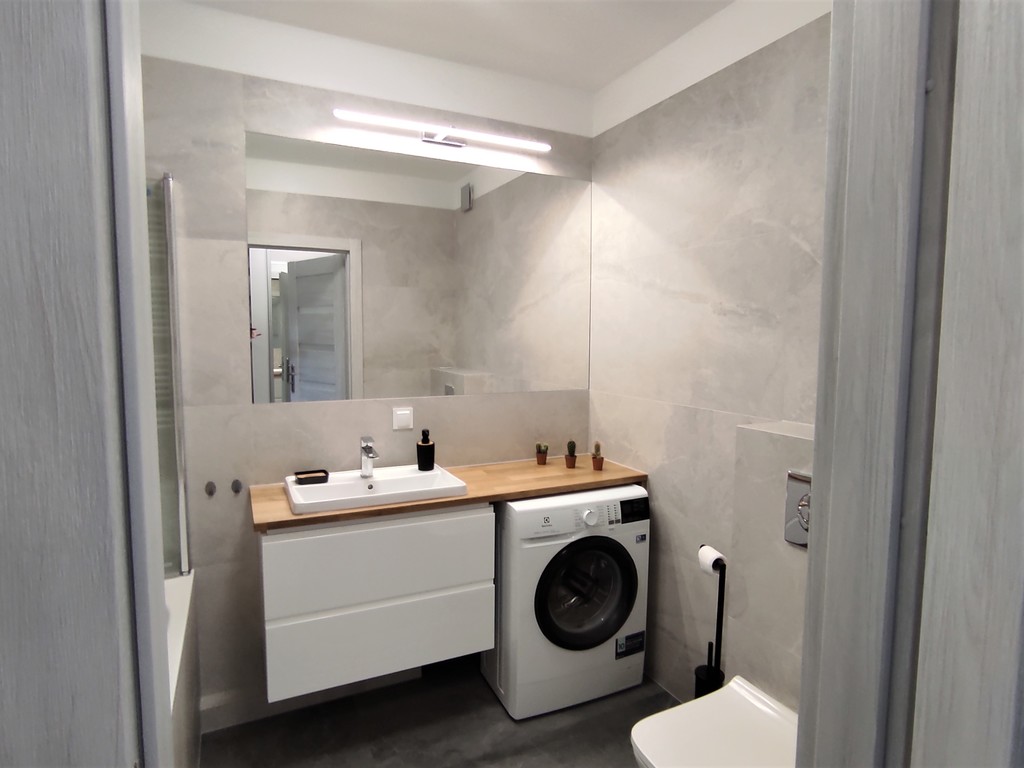 Mieszkanie zostało urządzone w nowoczesnym stylu, jest przestronne i dobrze doświetlone.