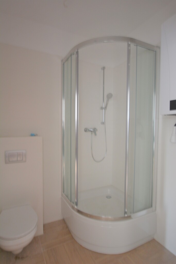 Na podłodze w pokojach panele. Łazienka w glazurze, wyposażona w kabinę natryskową, umywalkę, WC.