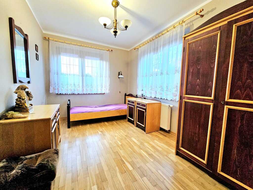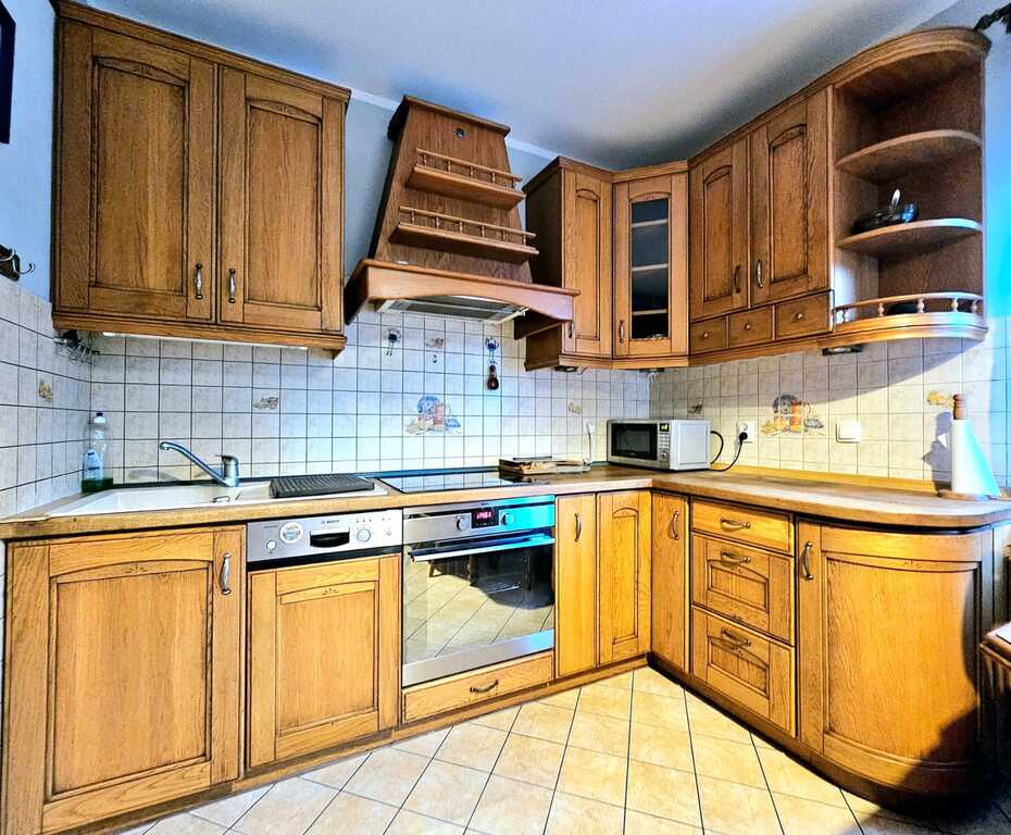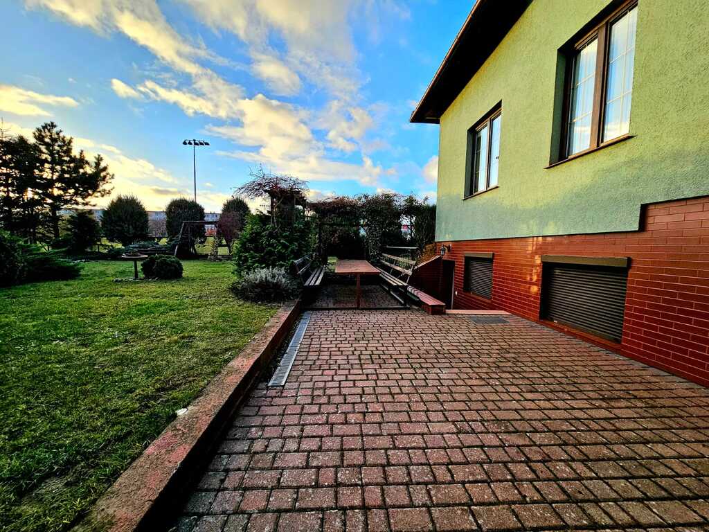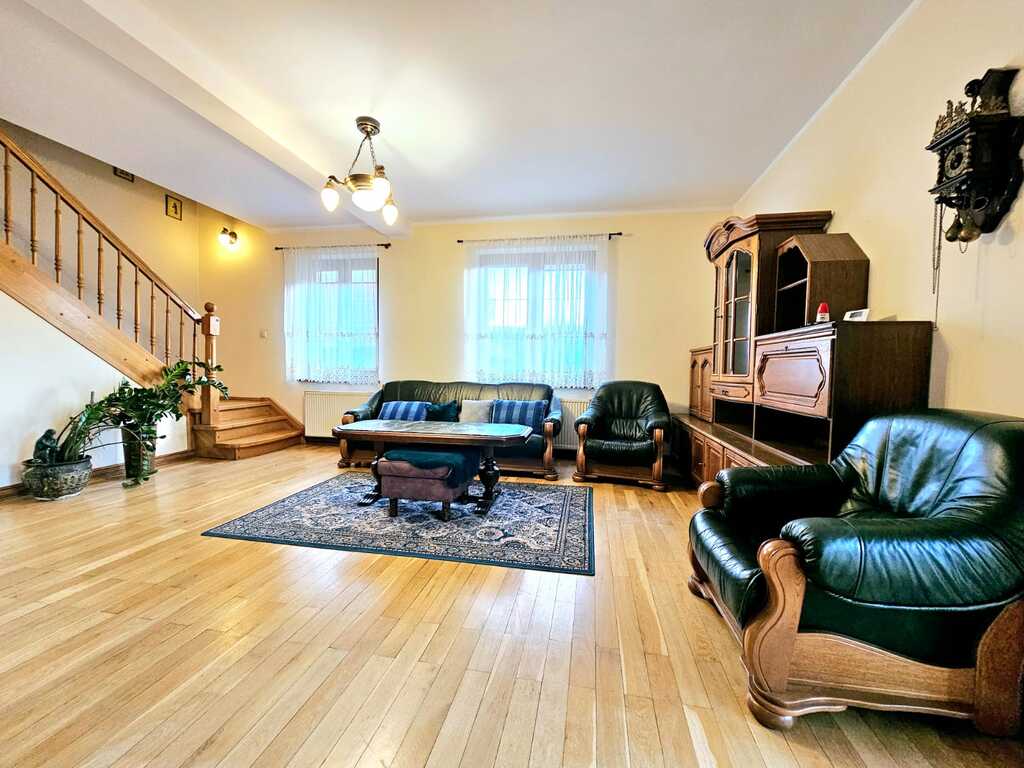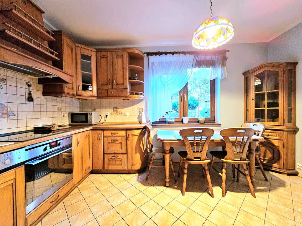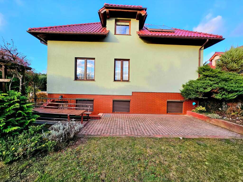 Oferujemy do wynajęcia dom wolnostojący o powierzchni ponad 215 m2, usytuowany na 550 metrowej działce - zagospodarowanej licznymi nasadzeniami, miejscem na grilla, a także miejscem na wypoczynek i relaks. Nieruchomość znajduję się w atrakcyjnej lokalizacji Gryfina, spokojnej okolicy, co zapewnia komfort mieszkania. Jednocześnie dom zlokalizowany jest blisko centrum miasta, a co za tym stoi - marketów, sklepów, lokali usługowych i gastronomicznych, szkół, przedszkoli itp. Na powierzchnie mieszkalną składa się - na pierwszym poziomie domu - duży salon z kominkiem i wyjściem na taras oraz ogród, sypialnia, umeblowana i kompletnie wyposażona kuchnia (m.in. zmywarka, piekarnik, płyta indukcyjna, lodówka, meble dębowe w zabudowie), łazienka z natryskiem i garderobą, osobne WC oraz pomieszczenie z dużą zabudową typu Komandor. Na drugim poziomie domu, na który prowadzą dębowe schody - znajdują się 3 sypialnie (każda z wyjściem na balkon), łazienka (z wanną i hydromasażem) oraz garderoba. Podłogi w całym domu dębowe, a okna i drzwi drewniane.
