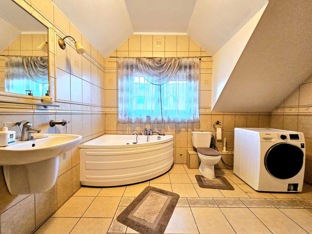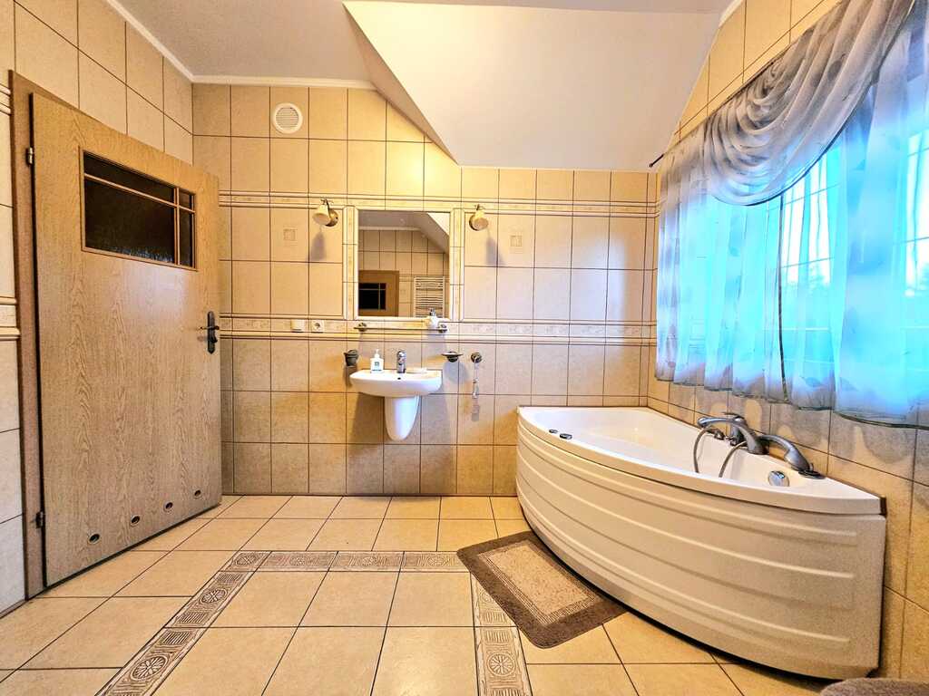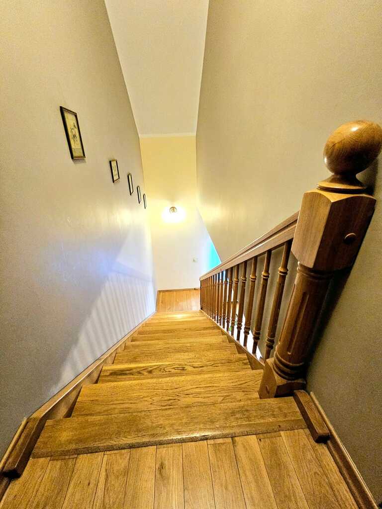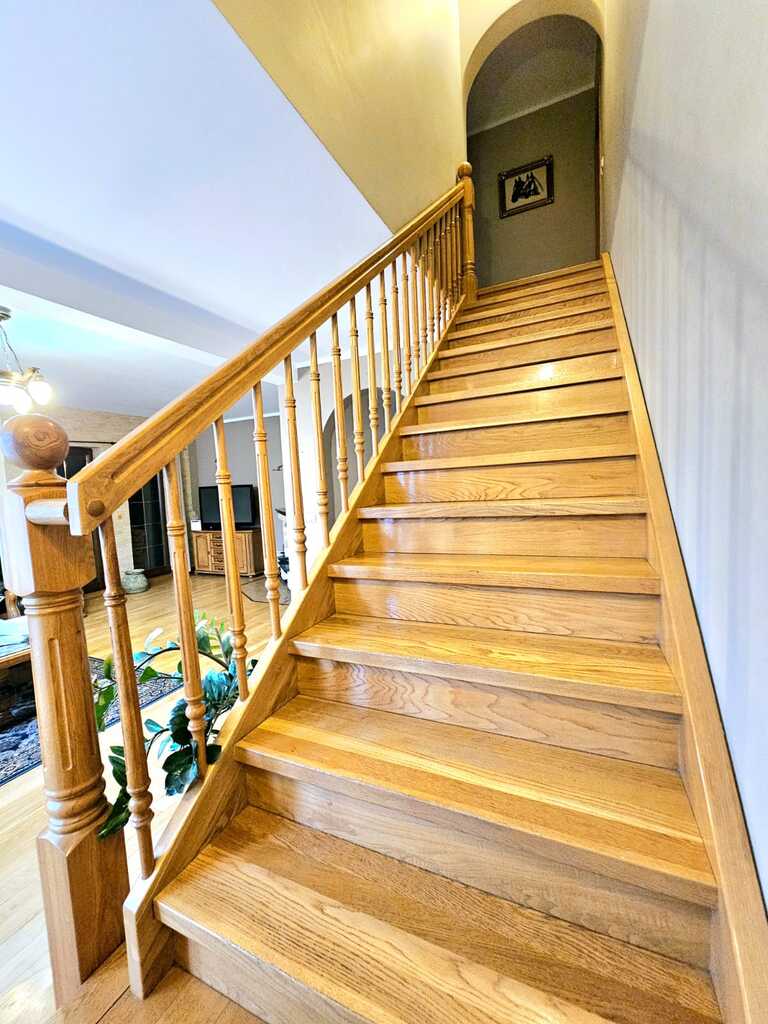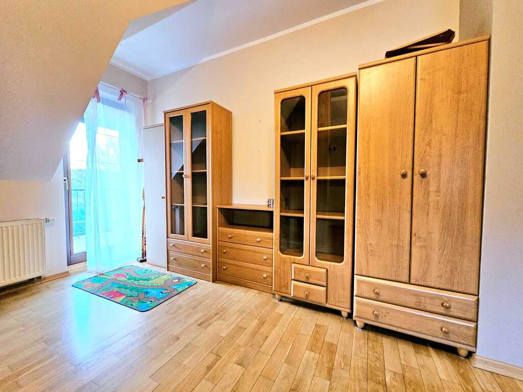 Oferujemy do wynajęcia dom wolnostojący o powierzchni ponad 215 m2, usytuowany na 550 metrowej działce - zagospodarowanej licznymi nasadzeniami, miejscem na grilla, a także miejscem na wypoczynek i relaks. Nieruchomość znajduję się w atrakcyjnej lokalizacji Gryfina, spokojnej okolicy, co zapewnia komfort mieszkania. Jednocześnie dom zlokalizowany jest blisko centrum miasta, a co za tym stoi - marketów, sklepów, lokali usługowych i gastronomicznych, szkół, przedszkoli itp. Na powierzchnie mieszkalną składa się - na pierwszym poziomie domu - duży salon z kominkiem i wyjściem na taras oraz ogród, sypialnia, umeblowana i kompletnie wyposażona kuchnia (m.in. zmywarka, piekarnik, płyta indukcyjna, lodówka, meble dębowe w zabudowie), łazienka z natryskiem i garderobą, osobne WC oraz pomieszczenie z dużą zabudową typu Komandor. Na drugim poziomie domu, na który prowadzą dębowe schody - znajdują się 3 sypialnie (każda z wyjściem na balkon), łazienka (z wanną i hydromasażem) oraz garderoba. Podłogi w całym domu dębowe, a okna i drzwi drewniane.