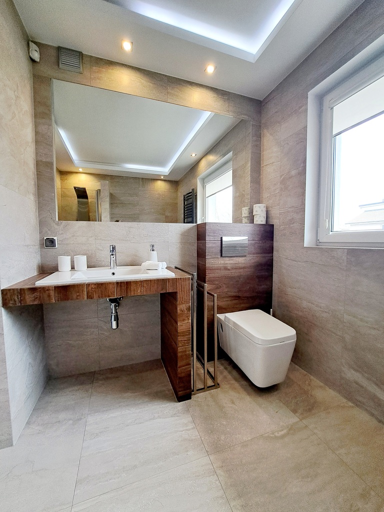 * centralnie ulokowana jest duża łazienka z wanna i prysznicem