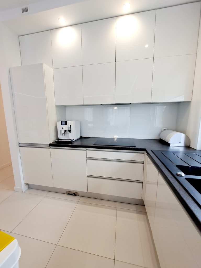 * otwarta kuchnia w pełni wyposażona jest pięknie wkomponowana kolorystycznie w pozostałą przestrzeń