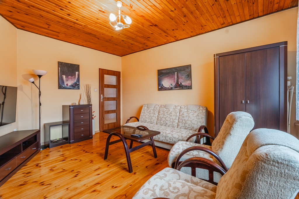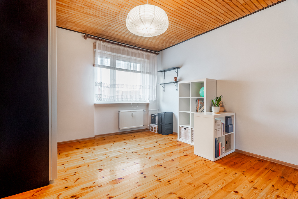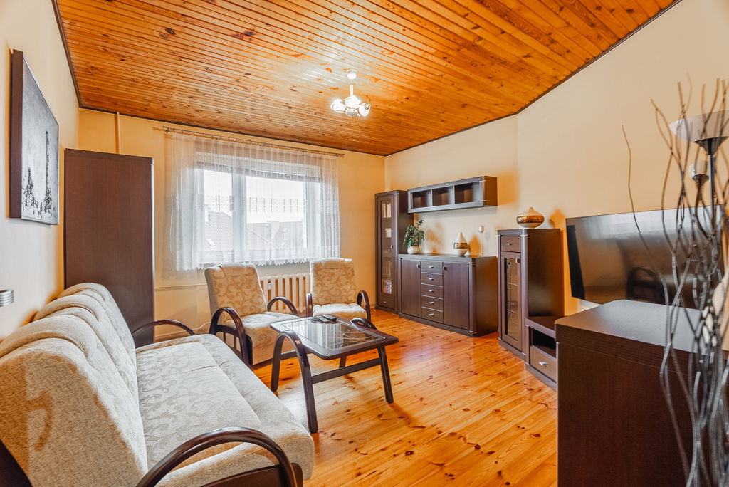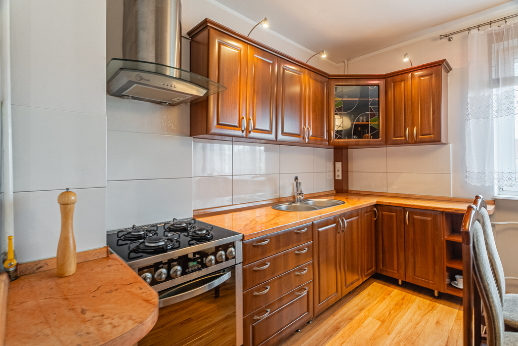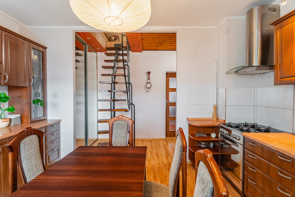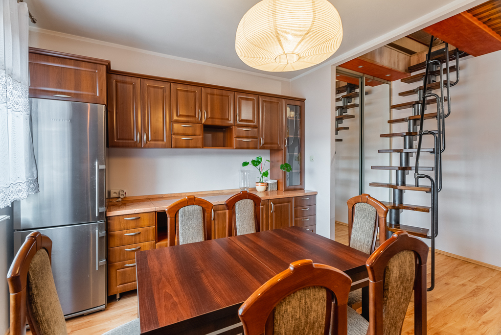 - sporej kuchni z meblami i agd w zabudowie, mieszczącej duży stół, z oknem na stronę zachodnią,