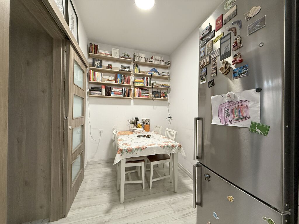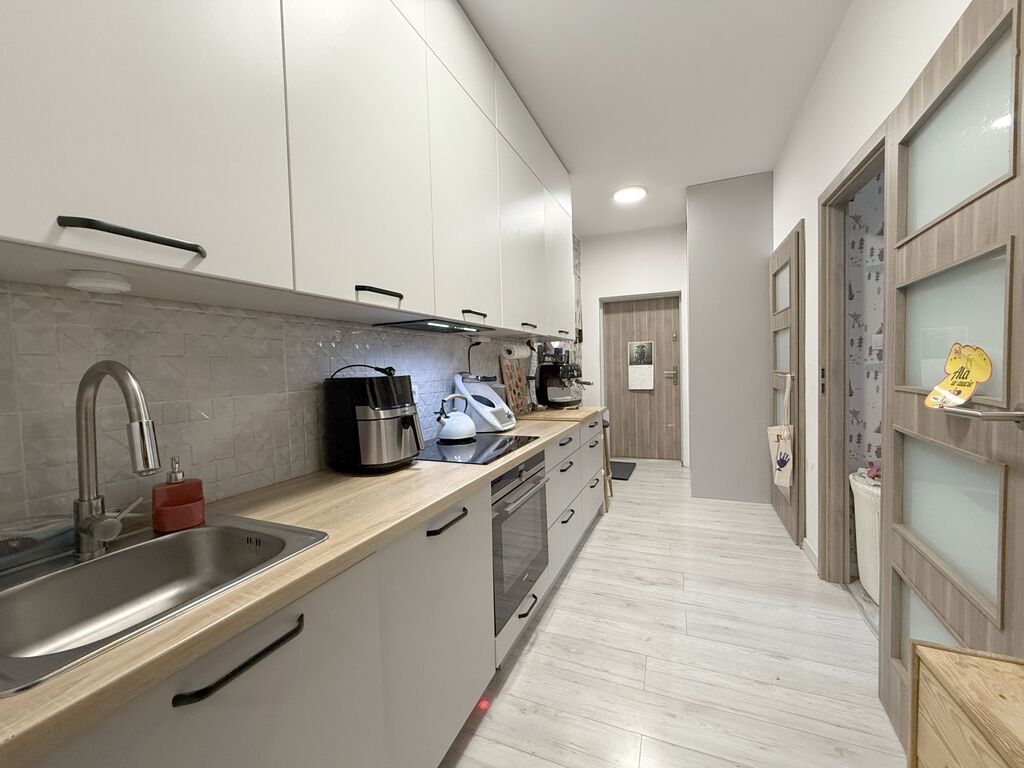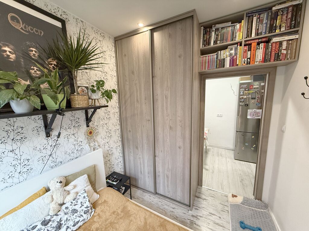 W cenie mieszkania pozostaje zabudowa kuchenna wraz ze sprzętem AGD (lodówka, piekarnik, płyta indukcyjna, zmywarka) szafa w zabudowie w przedpokoju oraz szafa w zabudowie w sypialni, szafa w pokoju dziecięcym oraz łóżko w sypialni.