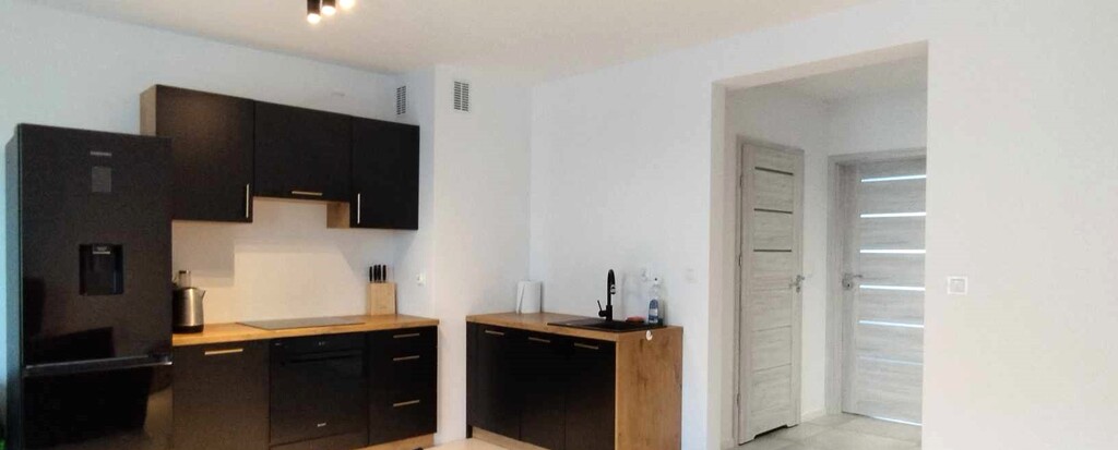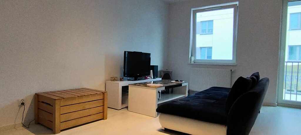 - Jasny, przestronny salon z aneksem kuchennym z bezpośrednim wyjściem na balkon