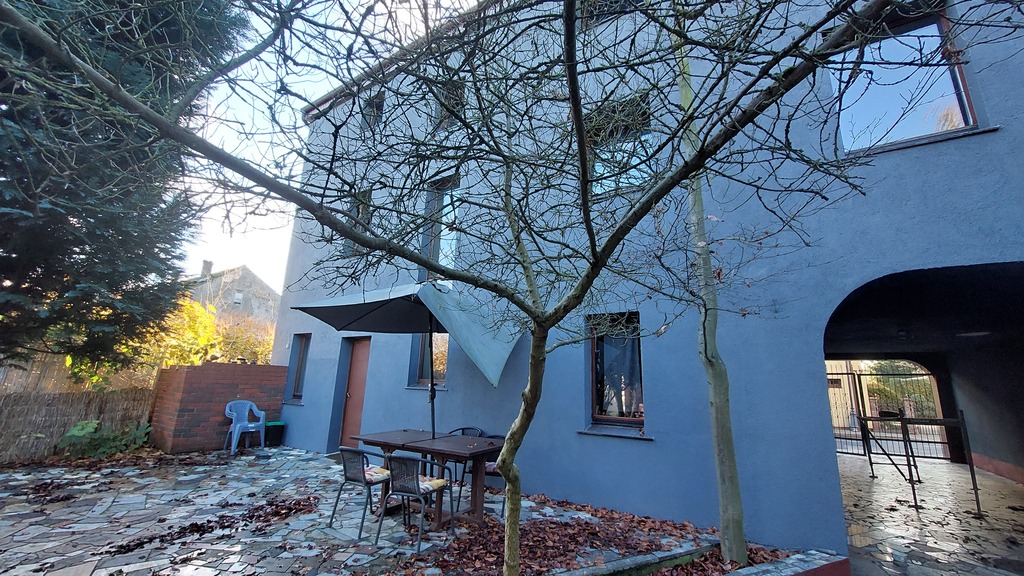 Budynek jednorodzinny w zwartej zabudowie przy jednej z centralnych uliczek Nowego Warpna. Okolica bardzo malownicza, blisko zalewu. Mieszkańcy dbają o piękny wygląd miasta, uliczki, latarnie, ławeczki, promenada, port. Na parterze jest lokal usługowy - restauracja z pełnym zapleczem. Pod budynkiem jest wjazd na posesję. Kuta stylizowana brama, płytki a dalej rozpościera się widok na taras, gdzie klienci restauracji mogą spożywać posiłki w cieniu drzew ozdobnych , obok nich jest oczko wodne. Na działce stoi niewielki samodzielny budynek ok 20-25 m2, murowany. W budynku głównym jest 7 pokoi: 6 dużych sypialni po 20 m2 i 1 pokój z kominkiem . Ten pokój ma ok 35-40 m2. Dla mieszkańców jest wygodna kuchnia i 2 łazienki. Obecnie budynek wykorzystywany był tylko w sezonie letnim, jednak doskonale nadaje się do zamieszkiwania przez cały rok. Latem wynajmowany był głównie najemcom z Niemiec, którzy chętnie odpoczywają w Nowym Warpnie. Obłożenie w sezonie było prawie 100 % możliwość zakupu działki z tyłu budynku ( od gminy) ok 350 m2. Okolica chętnie odwiedzana przez ludzi ceniących spokój, naturę, łatwy dostęp do większych miast ( Police, szczecin),uprawiania sportów wodnych oraz rekreacji. Miasto słynie z bogatej historii, malowniczych uliczek i zabytków, które tworzą wyjątkową atmosferę tego miejsca.