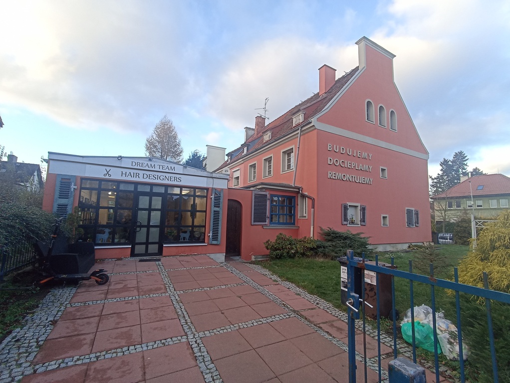 Narożny dom w zabudowie bliźniaczej położony z jednej strony w widocznym miejscu przy ruchliwej ulicy, a z drugiej przy cichej uliczce prowadzącej do placu Ojca Jakuba Wujka.
