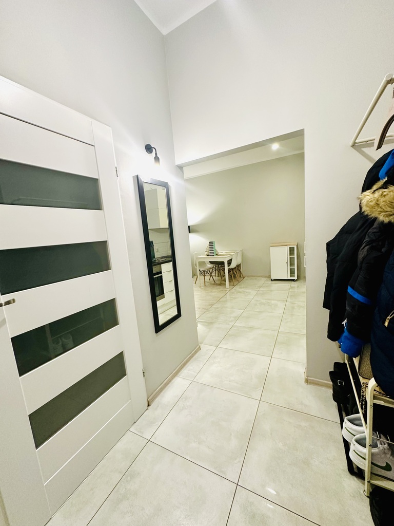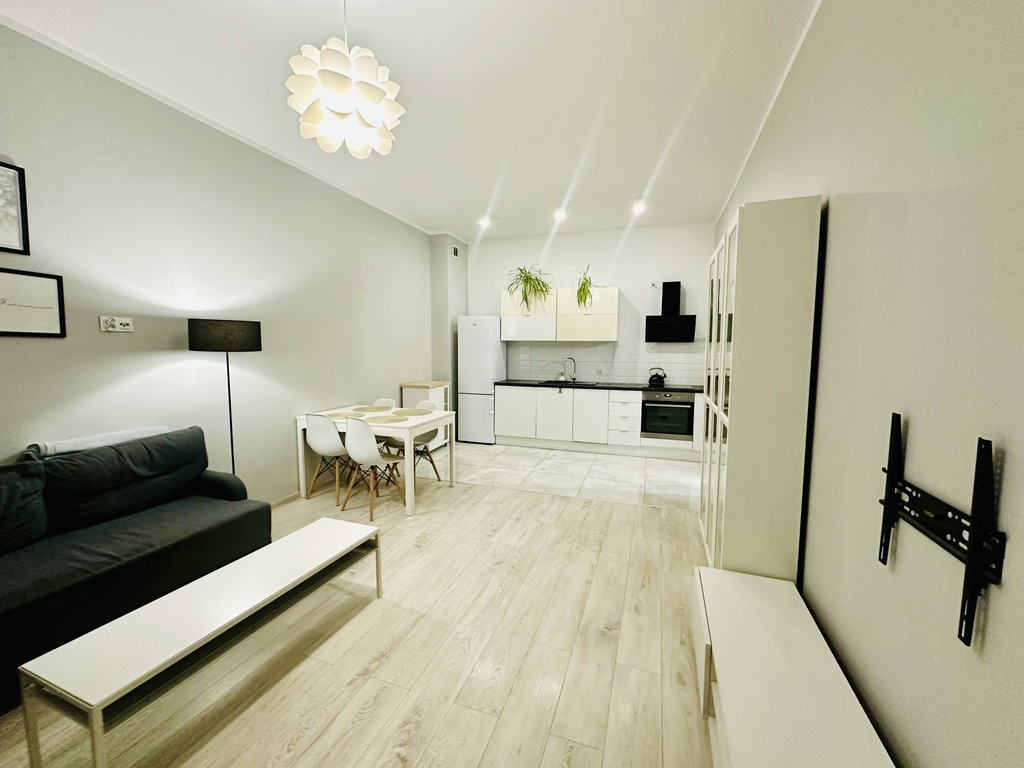 Dwa pokoje (w tym jeden z aneksem kuchennym), łazienka z prysznicem i przedpokój. Z sypialni wyjście na spory balkon.
