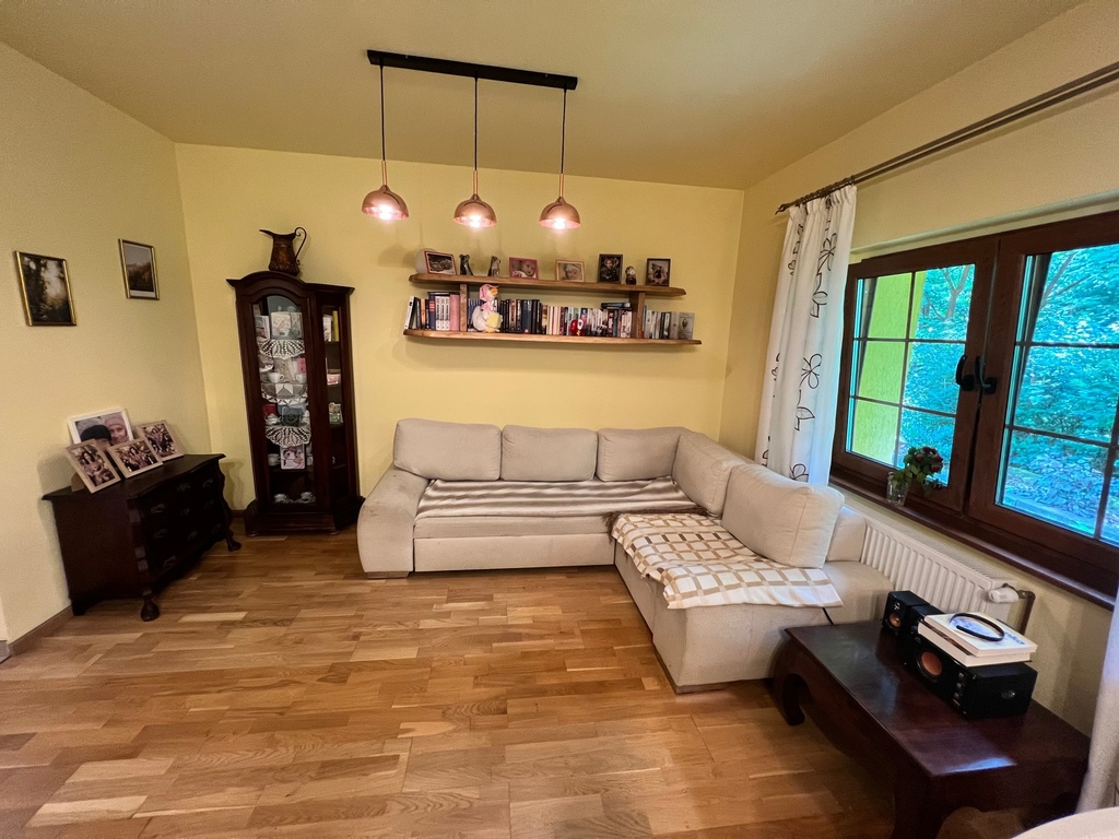 Na nieruchomość składa się również budynek gospodarczy o pow. 110 m2 połączone z dwoma garażami. Budynek gospodarczy można łatwo przystosować na budynek mieszkalny.