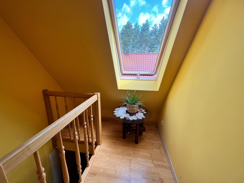 Powierzchnia całkowita domu to 140 m2 a użytkowa 110 m2 położony na działce o powierzchni 823 m2, cały teren jest większy o 2000 m2, który jest w dzierżawie za 30 zł. rocznie.