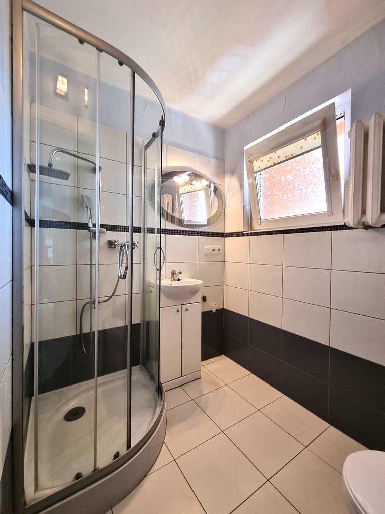 Na powierzchni 44,6 m2 znajdują się : dwa pokoje, kuchnia, łazienka z kabiną prysznicową oraz toaletą i korytarz.
