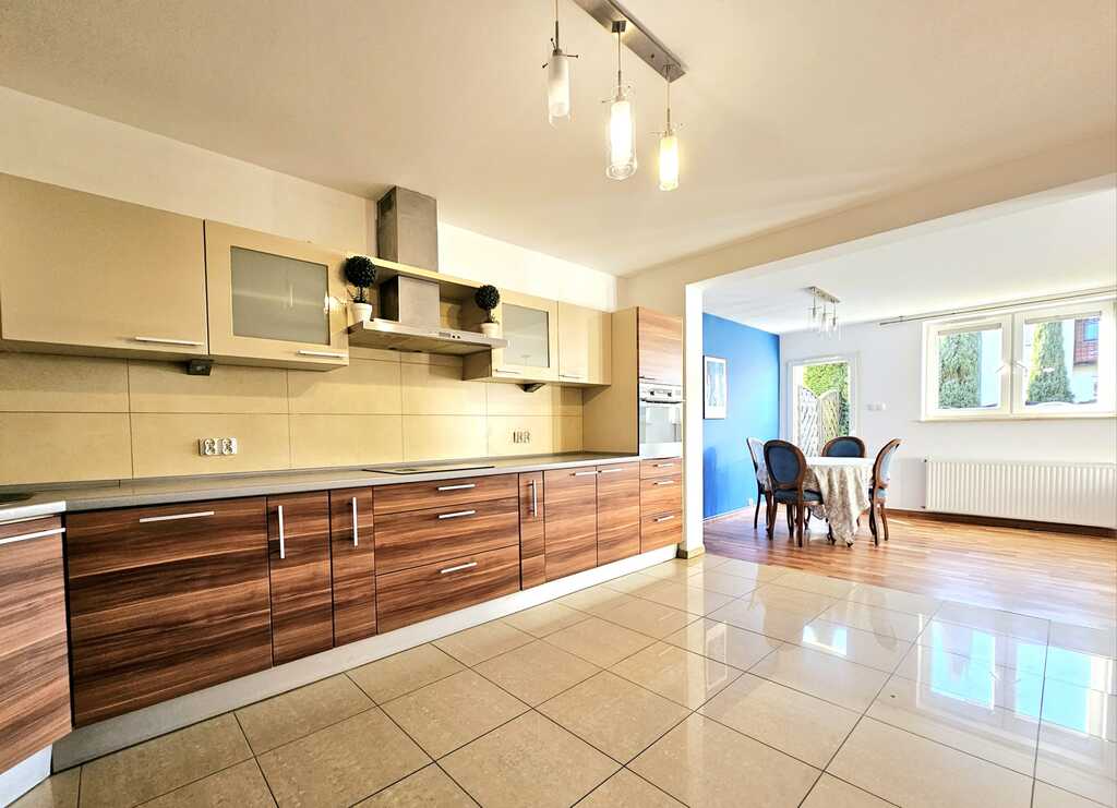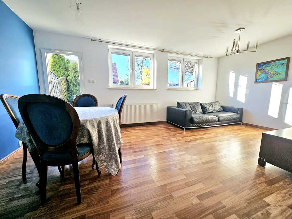 Oferujemy do sprzedaży obszerne, rozkładowe, jasne i słoneczne mieszkanie, znajdujące się na parterze niskiego bloku z 2007 roku. Na powierzchnię 76 m2 składa się: salon z otwartą kuchnią (34,22 m2), 2 sypialnię (13,40 m2 oraz 13,70 m2), łazienka z WC (5,98 m2) oraz korytarz (8,62m2). Atutem mieszkania - słoneczny taras z ogródkiem (40 m2) oraz przynależne pomieszczenie gospodarcze (drewniany domek - 7m2). Stan lokalu - bardzo dobry, wysoki standard wykończenia, m.in. drewniana stolarka drzwi, drewniane podłogi. Mieszkanie jest świeżo po odnowieniu (2024 rok) m.in. wycyklinowane i polakierowane podłogi, nowe listwy przypodłogowe, odmalowane wszystkie ściany i sufity. Nieruchomość w pełni umeblowana (także w zabudowy) oraz wyposażona w sprzęty RTV/AGD (m.in. lodówka klasa A+++, kuchenka indukcyjna Mastercook, zmywarka Elektrolux, kuchenka elektryczna Elektrolux oraz pralka AEG) - wszystko pozostaje w cenie mieszkania. Lokal wyposażono również w wideodomofon oraz alarm przeciwwłamaniowy. Ogrzewanie piecem gazowym dwuobiegowym firmy Beretta (z funkcją programowania temperatury na każdy dzień tygodnia). Dodatkowym atutem, ogrzewanie podłogowe w kuchni, łazience i przedpokoju. W pokojach zainstalowano grzejniki panelowe. Na podwórzu znajduje się zamykana na pilota brama wjazdowa oraz indywidualne miejsce parkingowe bezpośrednio przy budynku - obligatoryjny zakup za kwotę 20.000 zł. Blok ocieplony, klatka schodowa czysta i zadbana, a teren przynależny zagospodarowany. Budynek bardzo dobrze zlokalizowany, w pobliżu m.in. markety, sklepy, urzędy, punkty usługowo - handlowe, punkty gastronomiczne itd. Nieruchomość również świetnie skomunikowana, bliskość pętli autobusowej oraz przystanków autobusowych, gwarantująca bezproblemowy przejazd środkami komunikacji miejskiej zarówno w kierunku Polic jak i Szczecina. Kolejnym atutem, niski czynsz - około 230 zł miesięcznie (z opłatami administracyjnymi oraz funduszem remontowym). Natychmiastowy termin wydania nieruchomości! Serdecznie zapraszamy na prezentację!